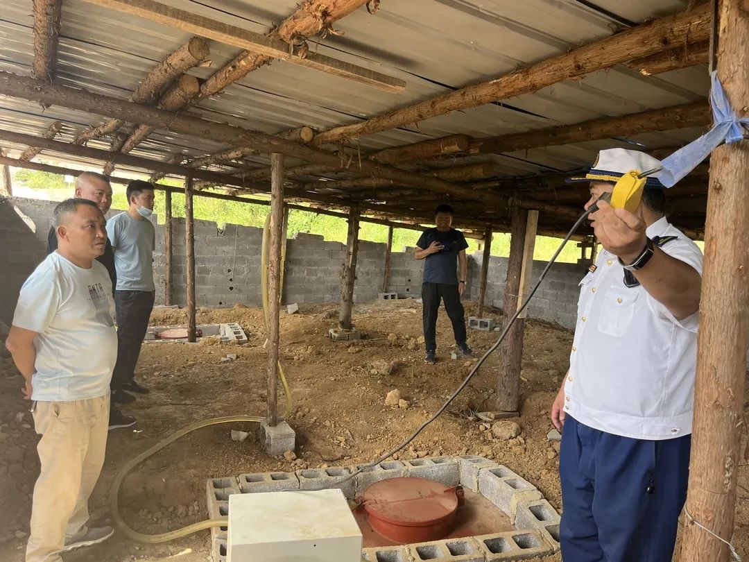 在开展“打非治违”专项行动中,据群众举报,安顺市平坝区夏云镇一在建工地有3个隐蔽的地下柴油罐。7月6日,接到举报后,平坝区消防救援大队立即展开行动,与区应急管理局、区商务局等部门和夏云镇人民政府到场开展联合检查。