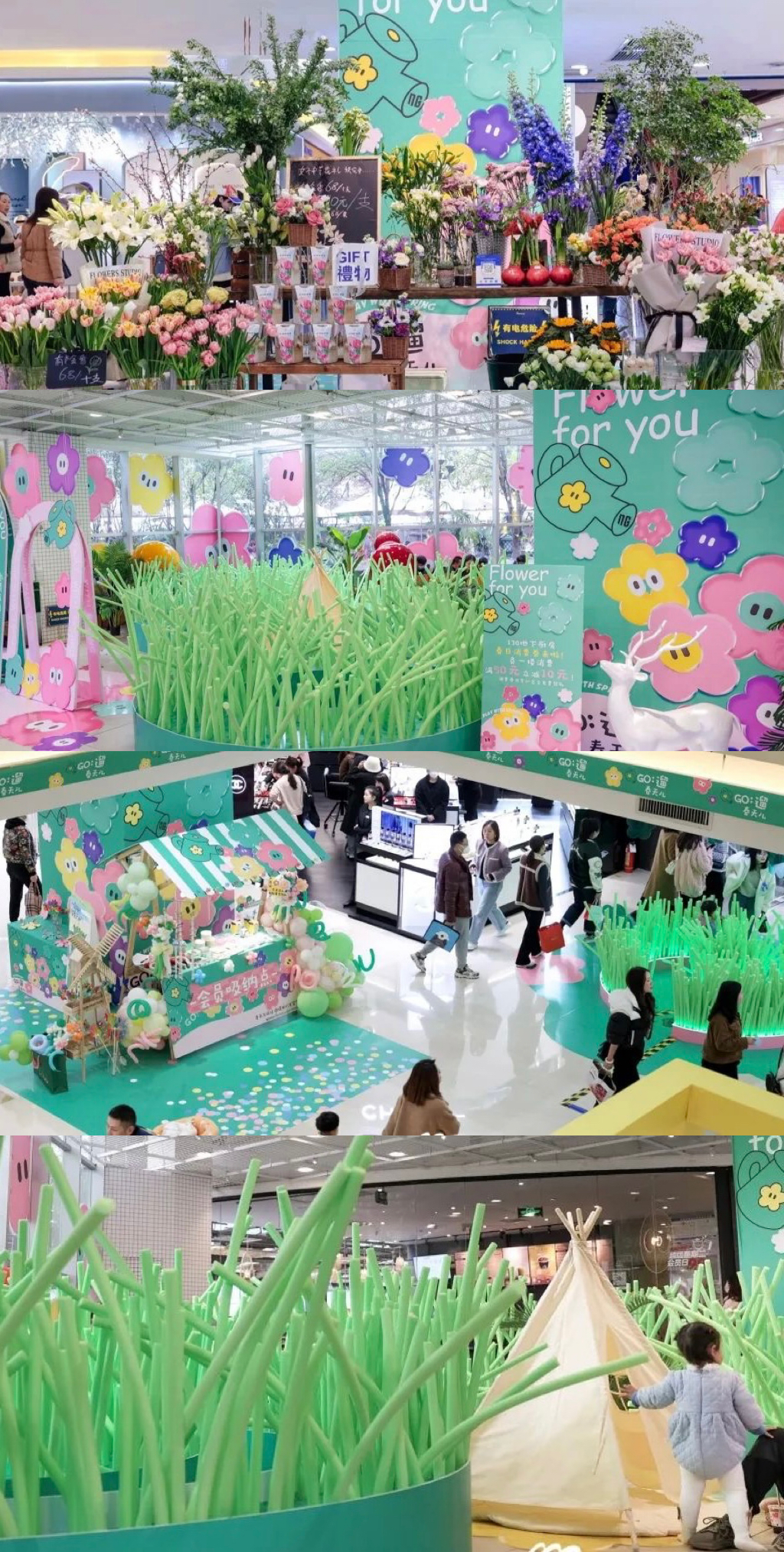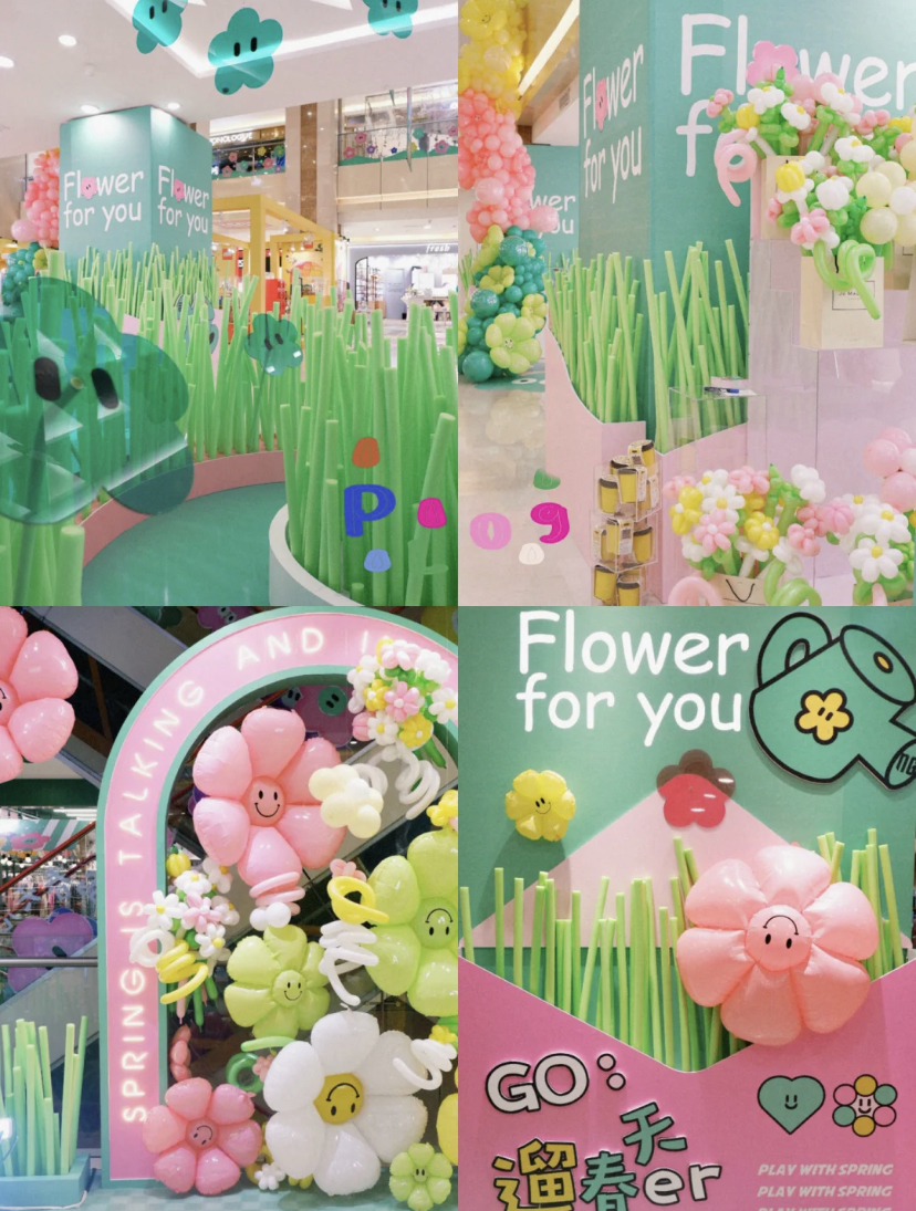 “把春天搬进室内”,融合春日元素打造了春天的氛围,打造新消费场景。在贵阳的一处商场,绽放了许多生机勃勃的春日花花。商场以花为媒,植入了大量春日元素,除此之外还开设了春日集市、春日露营等区域,让进入商场的顾客可以身临其境的感受到在花朵中漫步的独特体验的同时还能在这儿还能购物、能尝鲜。