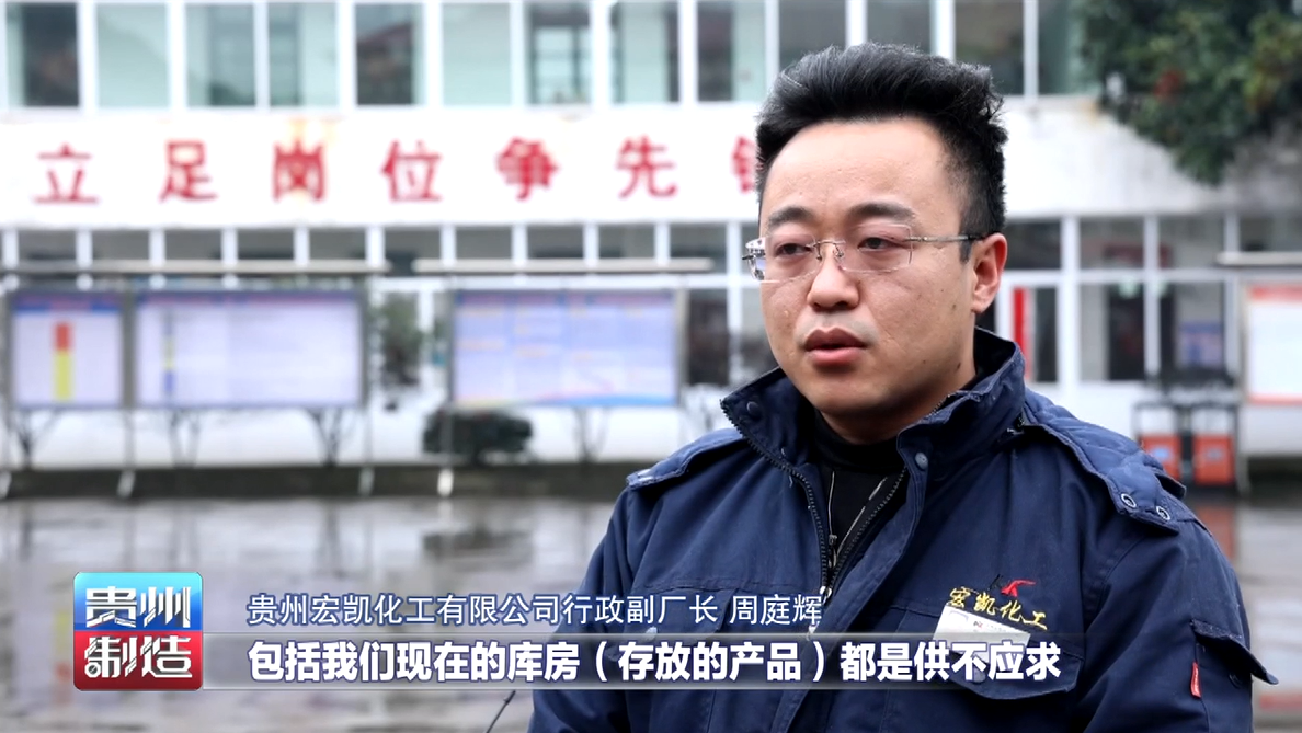 贵州宏凯化工有限公司行政副厂长周庭辉说:去年公司完成产品产量33000吨,总产值达到了3.057个亿。目前开产以来,已经接到4000万元到5000万元的订单,包括现在的库房存放的产品都是供不应求