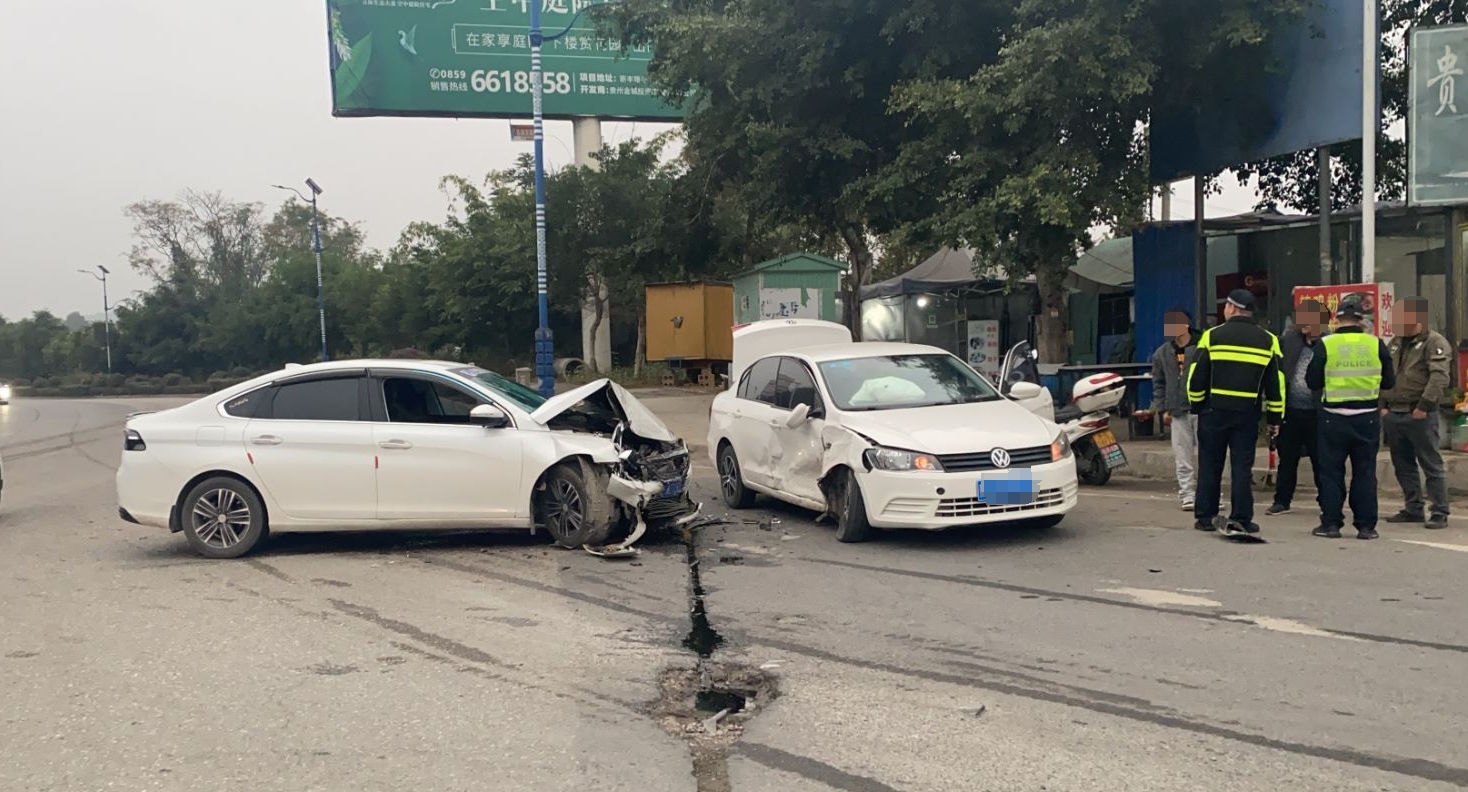 民警对现场进行勘察,通过现场勘查及查看周边公共场合视频,还原了事发经过,事发前,曾某驾驶小轿车由贞丰县城方向往者相方向直行,杨某驾驶小轿车由者相方向往杨家山方向右转弯行驶,当行驶至放杨家山的该岔路口时,两车发生碰撞,车辆因撞击力度较大直接瞬间弹出安全气囊,双方车辆均受损较重。所幸的是,双方车上人员在事故发生时都正确使用安全带,在如此之大的撞击下并未受伤。目前,该案正在进一步办理当中。