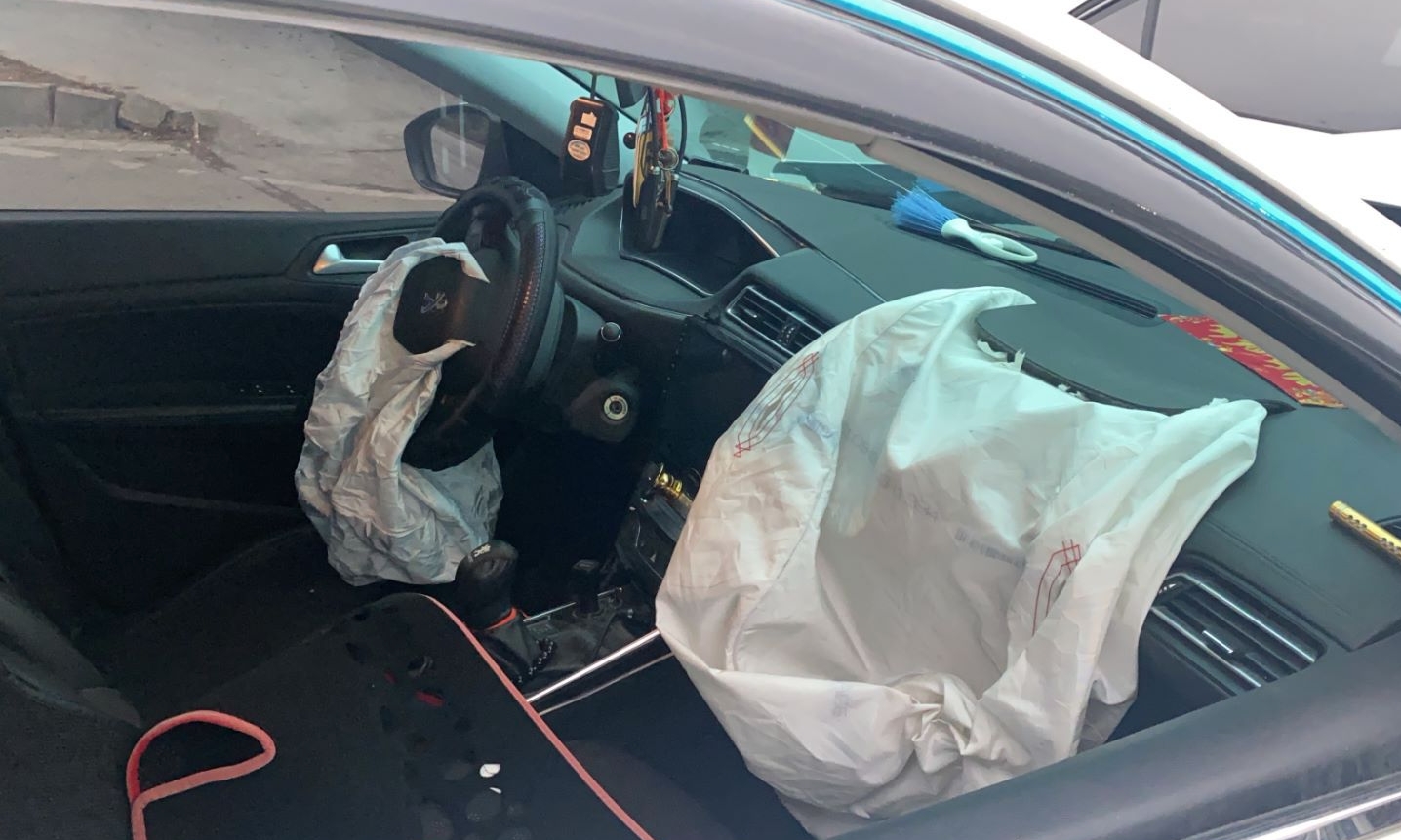 相撞后两车气囊均弹出 幸亏系好安全带!