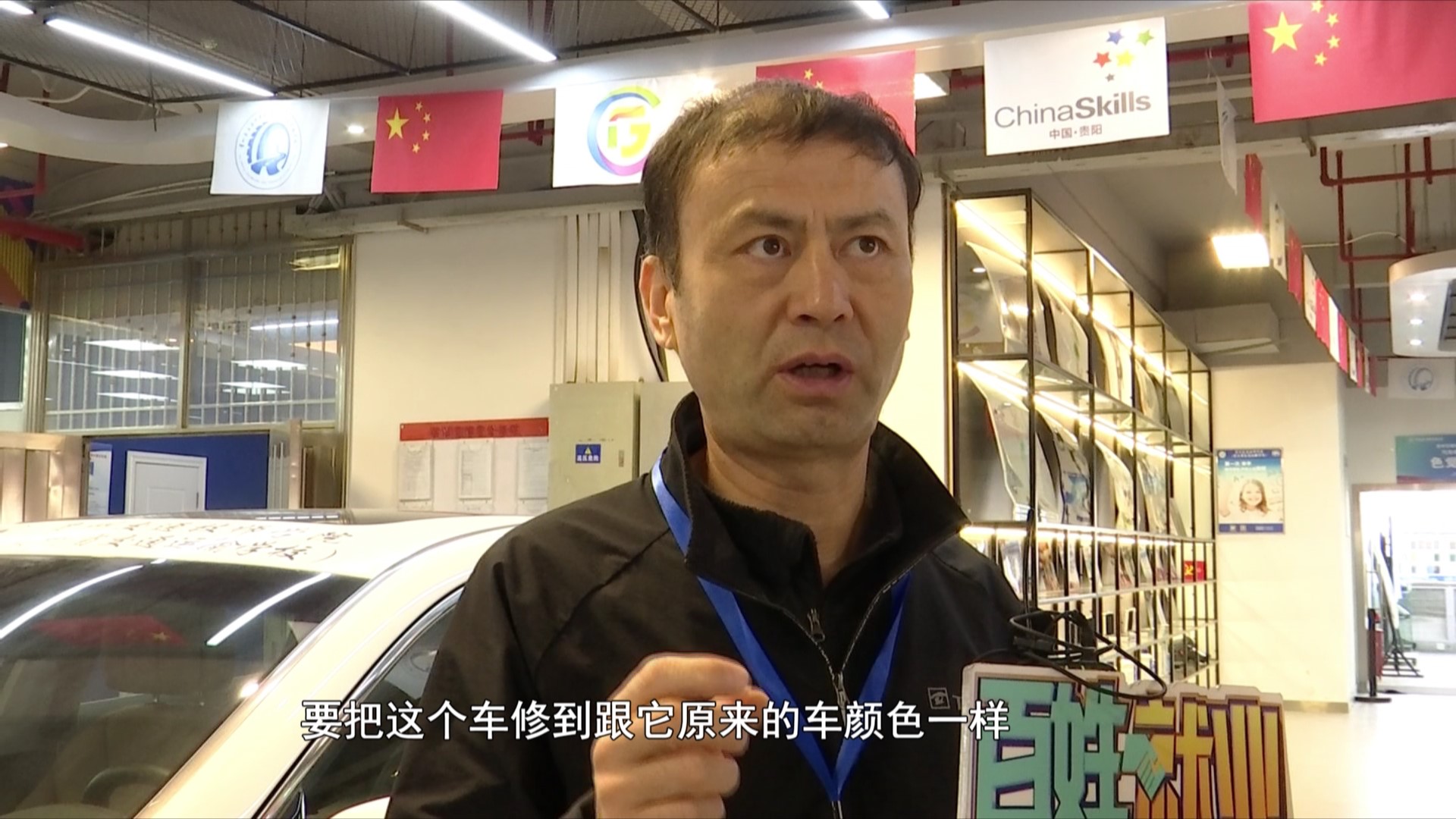 汽车车身涂装(喷漆)裁判长 张小鹏:我们一共分三个板块,在这边我们先做一个打磨,相当于前处理,打磨好后,我们要去喷房做喷漆;还有一个模块叫调色,车辆维修的时候要把这个车修到跟它原来的车颜色一样。