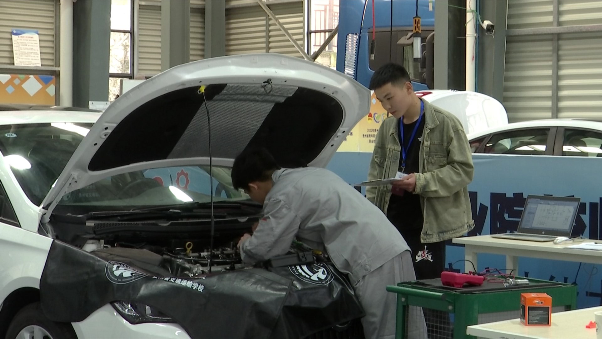 这些参赛选手,都是来自省内各个职校的中职学生。这次大赛是对大家专业水平的一次检验和考核。在贵州省交通运输学校的汽车大棚内,有两个赛项正在进行当中