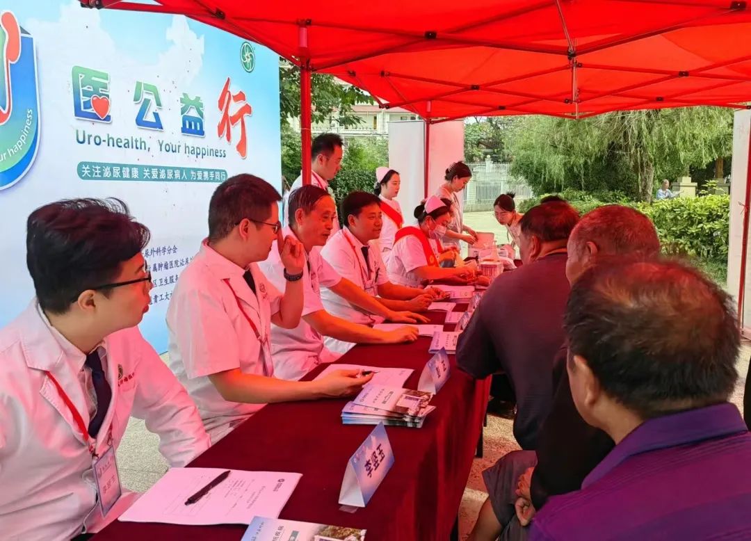 在我院泌尿外科学科带头人石家齐教授及科室副主任申智勇博士、护士长王梅秀的带领下,由医生、护士及工作人员共23人组成的义诊团队,在社区开展义诊活动。义诊团队热情接待前来参加义诊的群众,就群众提出的健康和疾病相关的疑问耐心解答,免费为群众开展检查、咨询、泌尿生殖系统疾病健康宣教等服务。此次接诊咨询群众120人次、血压、血糖测量121余人次、健康指导100余人次、前列腺特异性抗原检查筛查30余人次,共计服务260余人次,发放泌尿及生殖系肿瘤健康宣讲资料和手册300余份。
