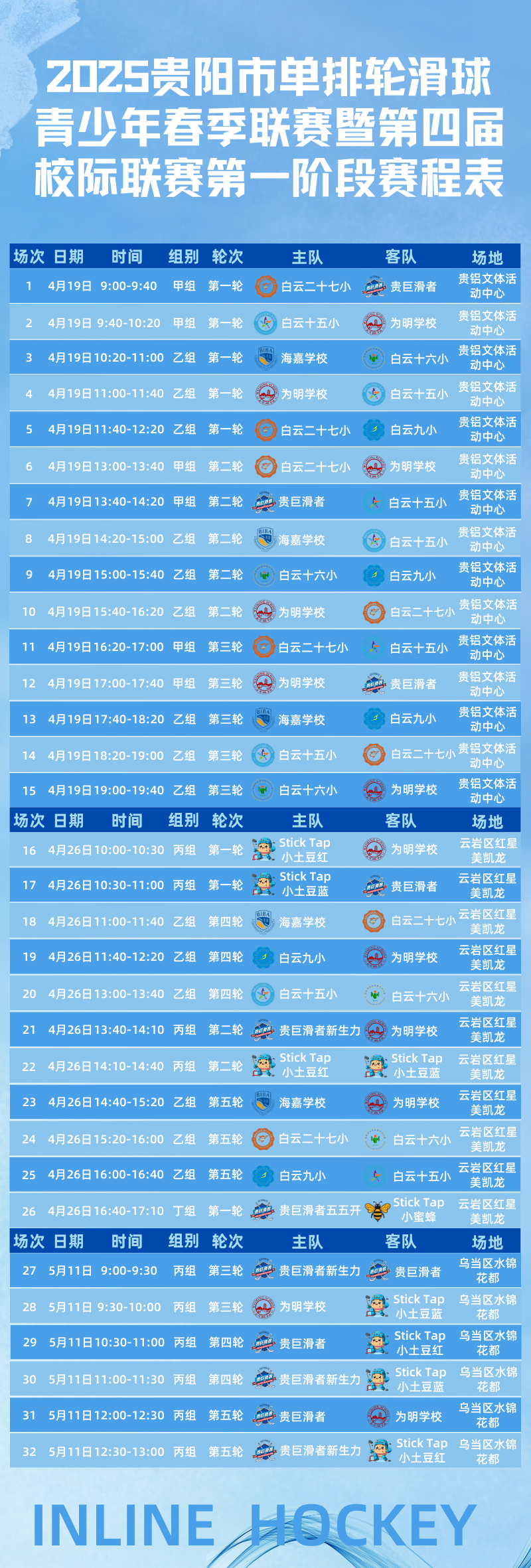 2025年贵阳市单排轮滑球春季联赛暨贵阳市校际联赛赛程计划及第一阶段赛程表