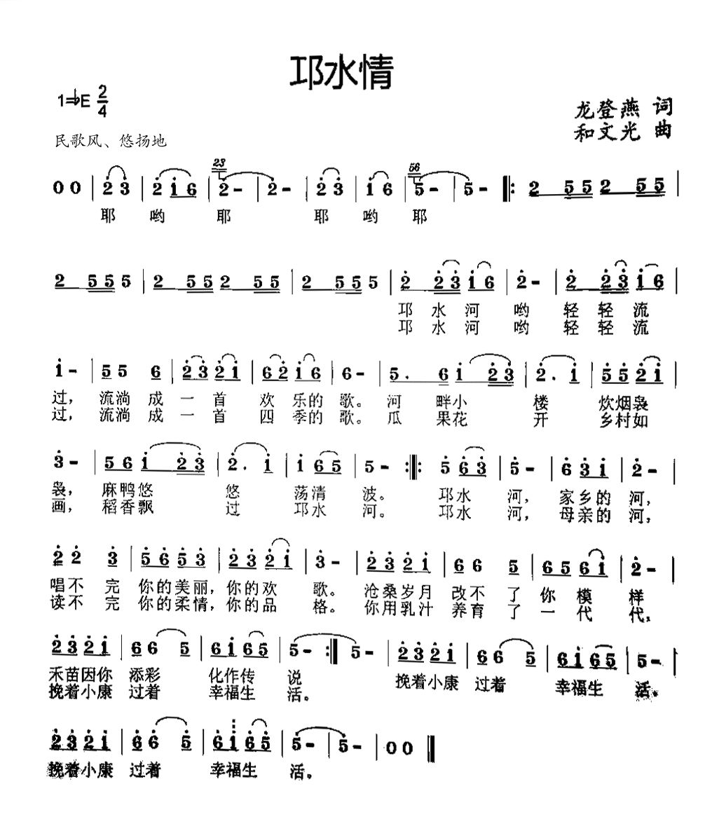 《原创贵州·听见》分享由贵州侗族姑娘龙登燕作词,我国著名民族音乐家、国家一级作曲家和文光先生作曲,国家一级演员、优秀青年歌唱家达坡玛吉演唱的《邛水情》。歌曲采用北部侗族地区音乐元素,融进了现代音乐元素创作而成,意在让人们感受到在乡村振兴中,大自然的唯美图景,体味音乐带来的美妙。歌词以邛水河流为主,形象的描绘邛水河的自然风光及河畔衍生的农耕、生态、乡愁文化,充满了浓郁的乡土气息。歌者抒情的表达,诠释了歌曲的内涵,唱出了人们心中的喜悦。