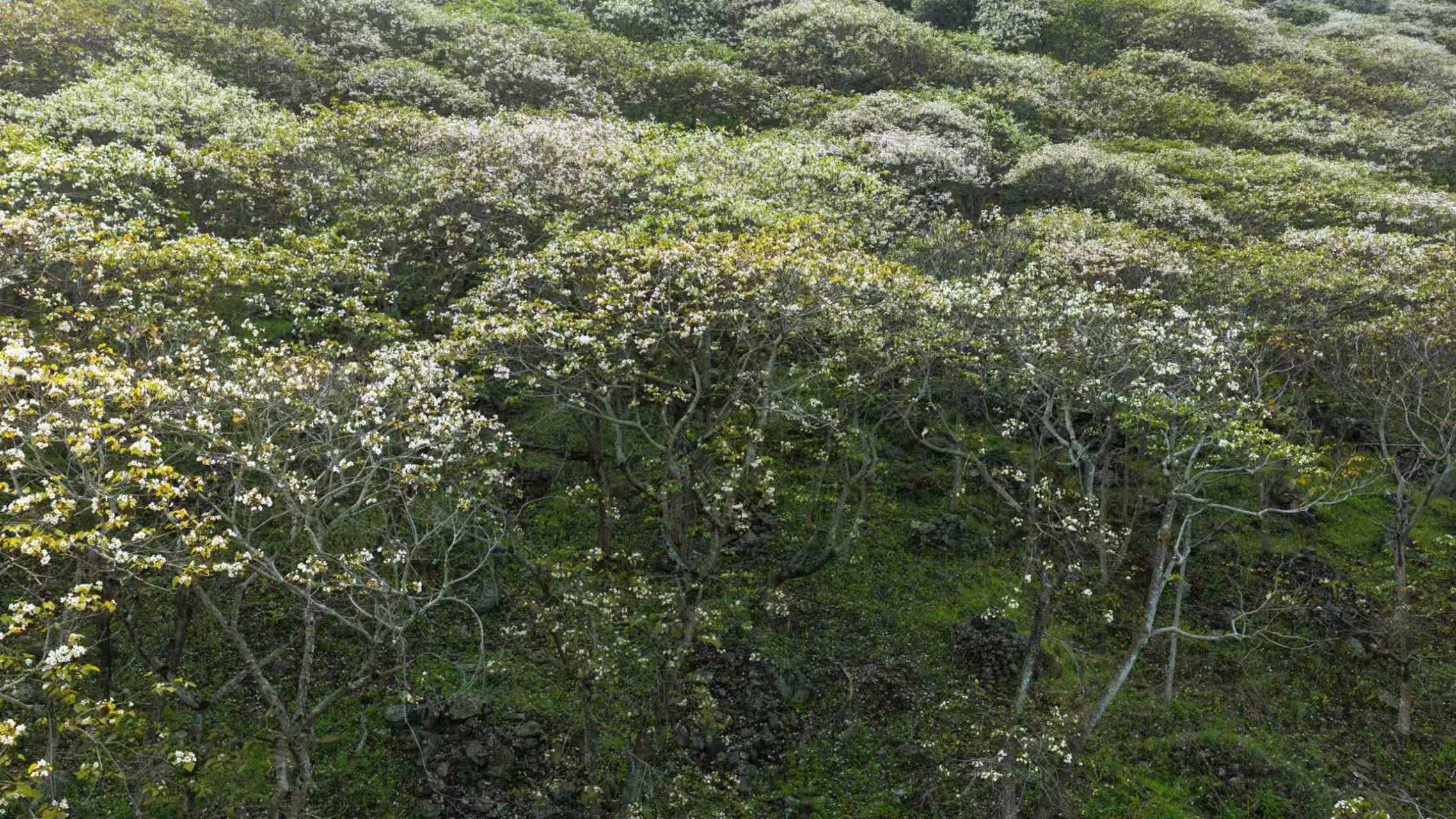 日前,黔西南布依族苗族自治州册亨县百口乡的2.2万亩油桐花竞相绽放,勾勒出春日里最动人的生态画卷。