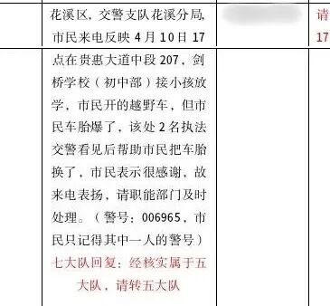 为表达谢意,车主辗转之下,拨通了12345,以特殊的“投诉”方式,提交了一则表扬诉求,希望能找到这两位“无名交警”。