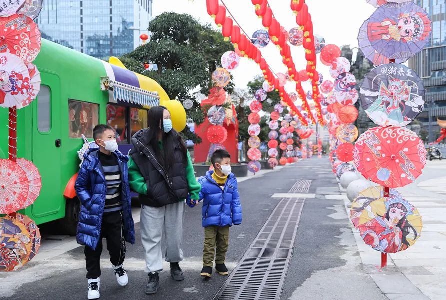 春节将至,位于观山湖区黔灵山路与长岭南路交汇处的荔星中心迎来了“换装”时刻。商场内,红色可爱卡通兔成为迎宾“主角”,各式精美的新春主题装饰品齐齐亮相,处处洋溢着“年味”;商场外,红灯笼长廊传递着新春的喜悦,国风图画的油纸伞随风摇曳,十分吸睛。