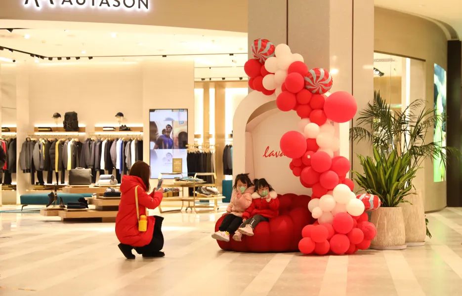 前来商场游购的市民络绎不绝,商场内各区域悬挂的红灯笼、气球,布置的海报、展板等,也让新春气息愈加浓厚。“一进入商场,红色的新年装饰就令我眼前一亮,这种热闹喜庆的购物氛围让人充满了购物欲,正好给孩子和老人选购新衣、买点礼品。”市民陈慧说道。