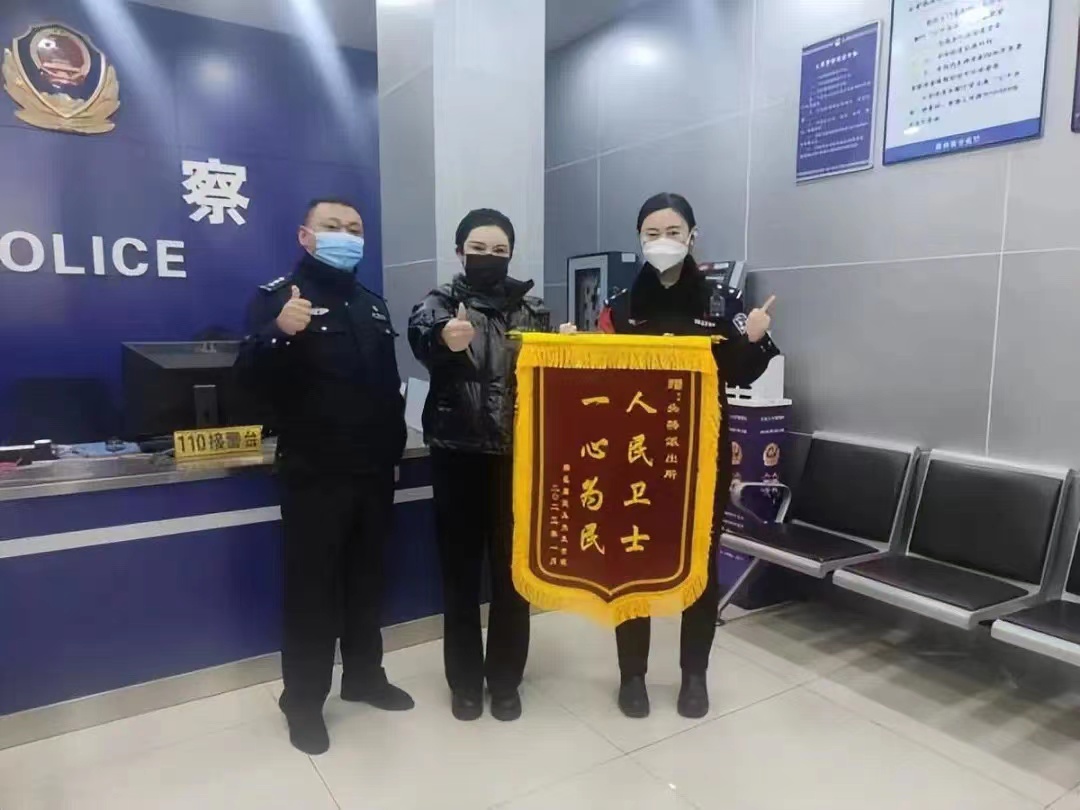 经过调取监控沿线寻找,民警顺利帮老人找回了走失的小狗,第二天,两位老人特意将一面写有“人民卫士 一心为民”的锦旗送到头桥派出所。