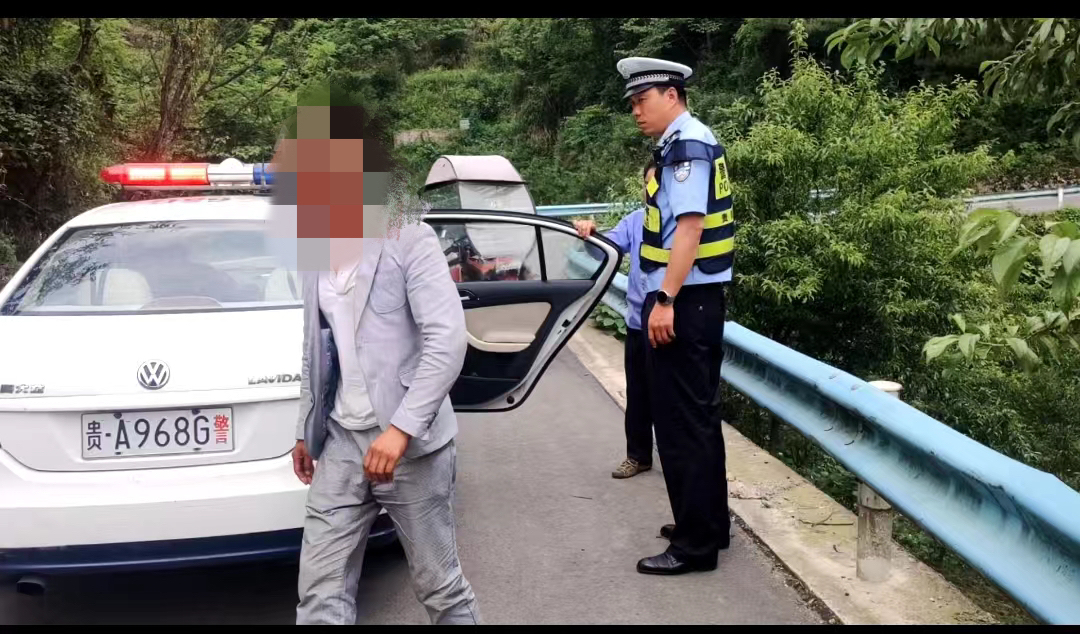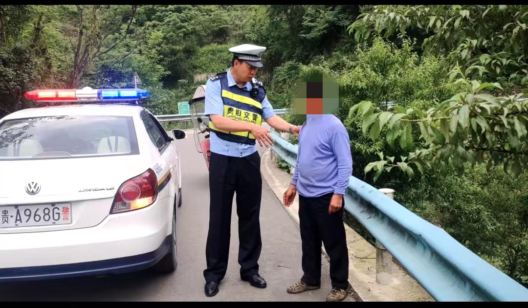 一男子走失十多天,误入高速公路,幸遇贵阳高速交警巡逻发现,几经周折,终联系上家属,驱车九十余公里将其送回家中。