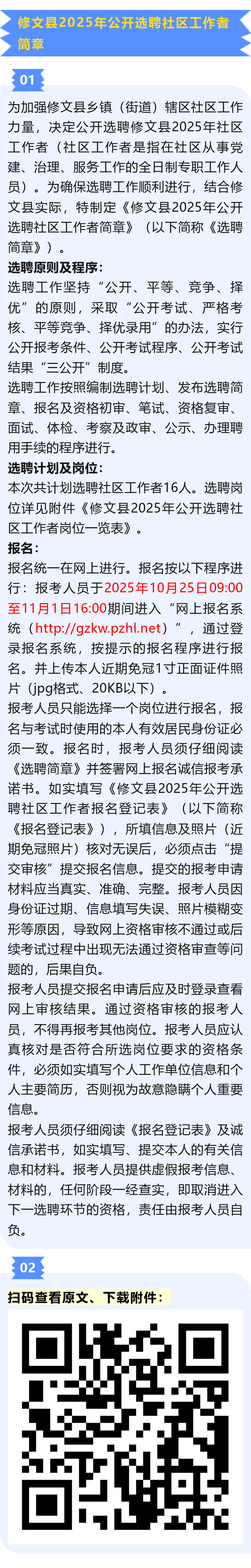 修文县2025年公开选聘社区工作者16人!报名时间:2025年10月25日至11月1日!