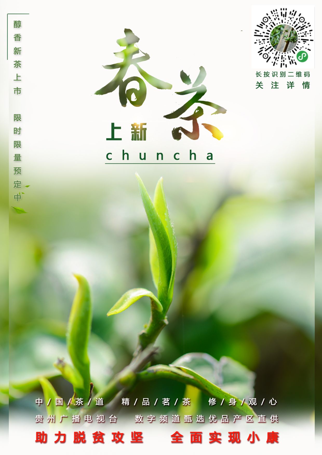 为积极响应贵州省委省政府发出的“奋力冲刺90天、坚决打赢歼灭战”脱贫攻坚动员令,日前,由贵州广播电视台数字频道联手贵州资深茶人罗锦新开展的《中华茶人罗锦新携手主持人小齐开播“茶”话会网络直播》将于2020年5月8日正式上线。