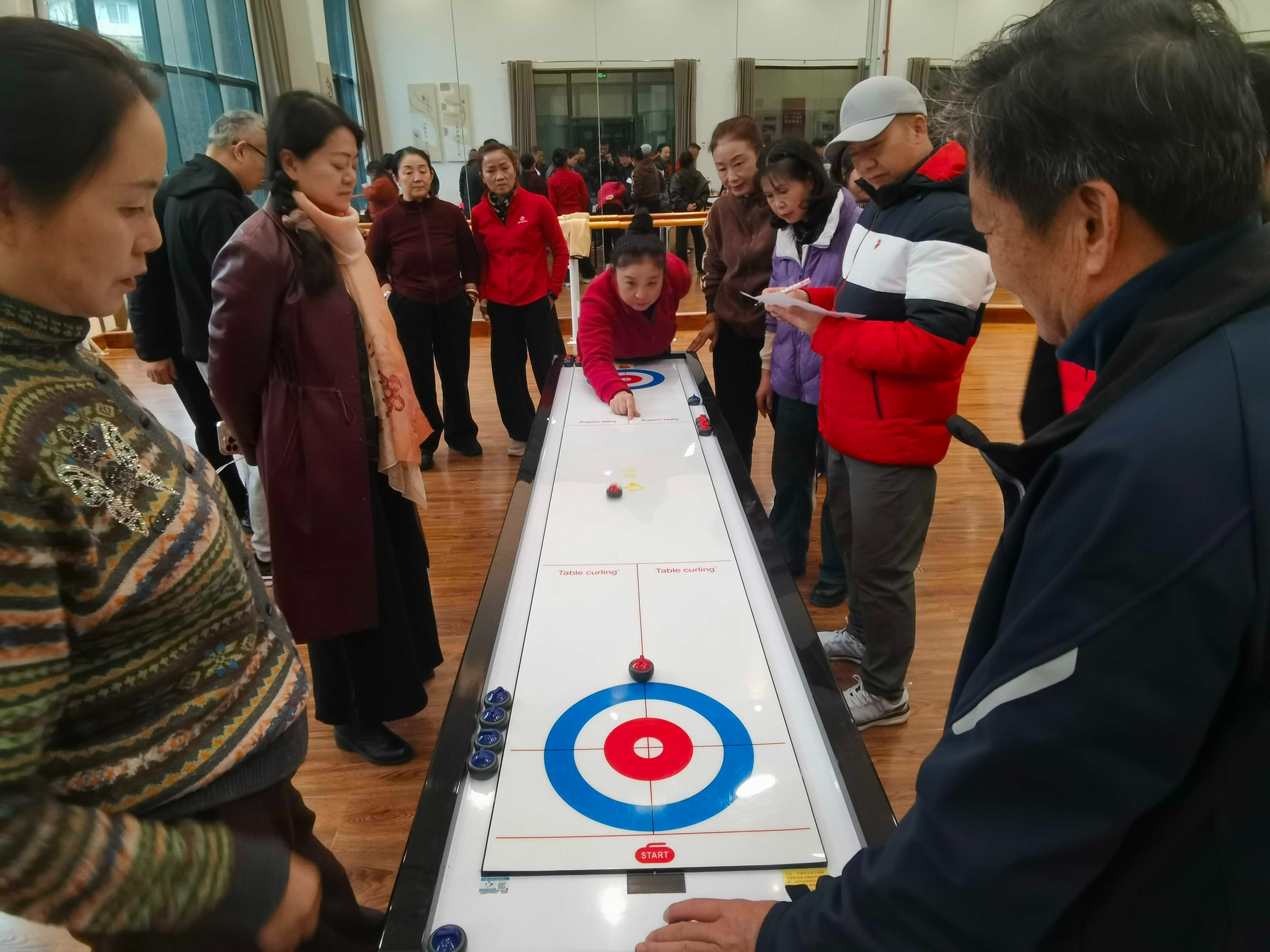 桌上冰壶球作为一项“适老化”健身新项目,兼具安全性与益智性,无需剧烈运动却能锻炼手眼协调能力,非常适合老年人参加,该项目已被列入第五届全国老年人体育健身大会项目之一。