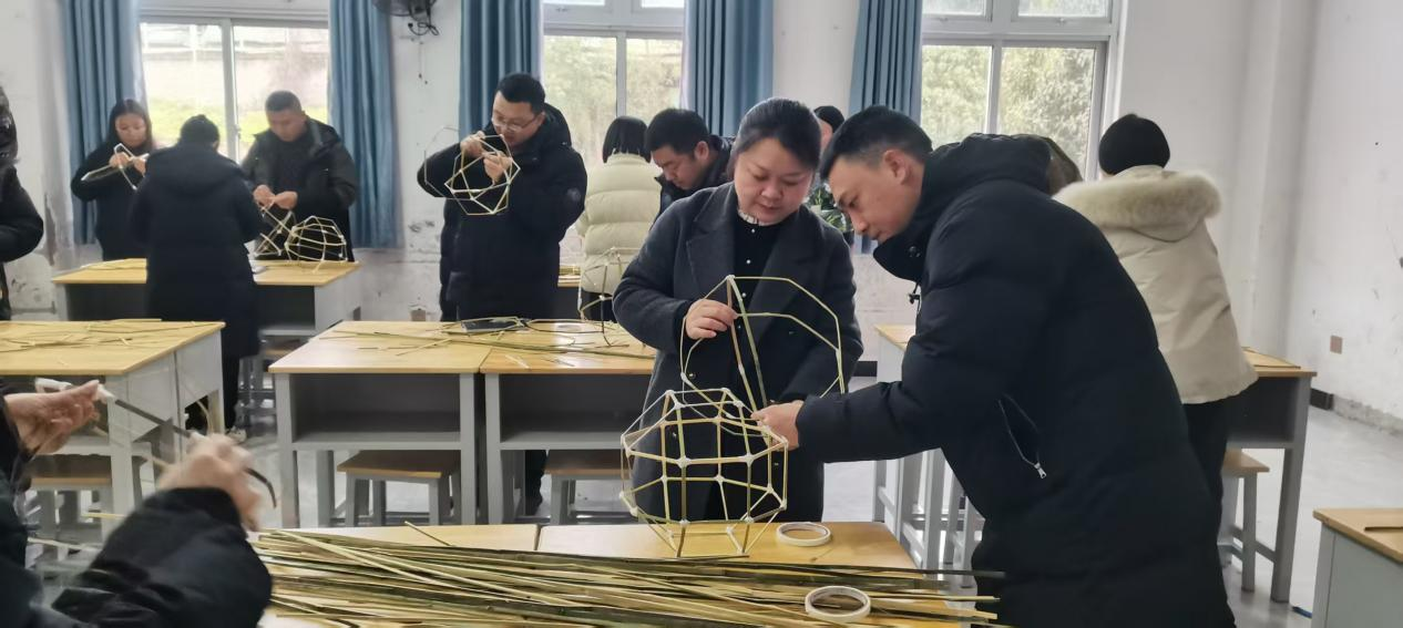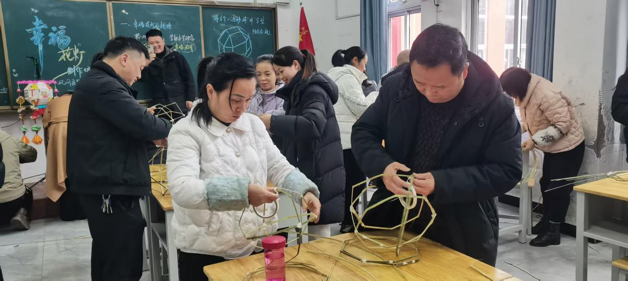 随后,老师们分组进行花灯制作。大家热情高涨,全身心投入到这场传统技艺的创作体验中。遇到难题时,彼此交流探讨,现场气氛热烈非凡。经过两个小时的不懈努力,一盏盏造型各异、色彩斑斓的花灯在老师们的巧手下惊艳亮相。象征吉祥如意的团结灯、寓意团圆美满的团圆灯、活灵活现的生肖灯……这些花灯不仅是手工艺品,更是老师们对传统文化热爱的结晶。看着自己亲手制作的成果,老师们脸上洋溢着满满的成就感。