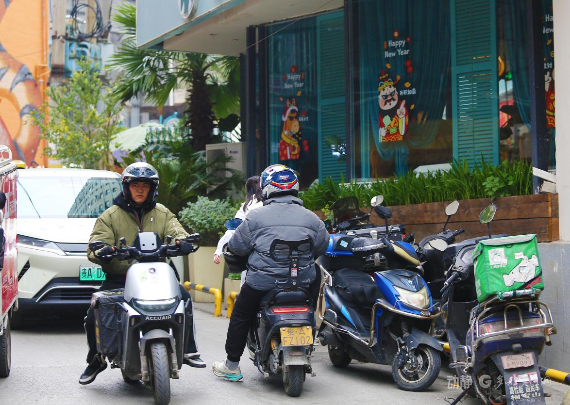 电瓶车驶过咖啡馆,烟火与文艺在巷中悄然邂逅。