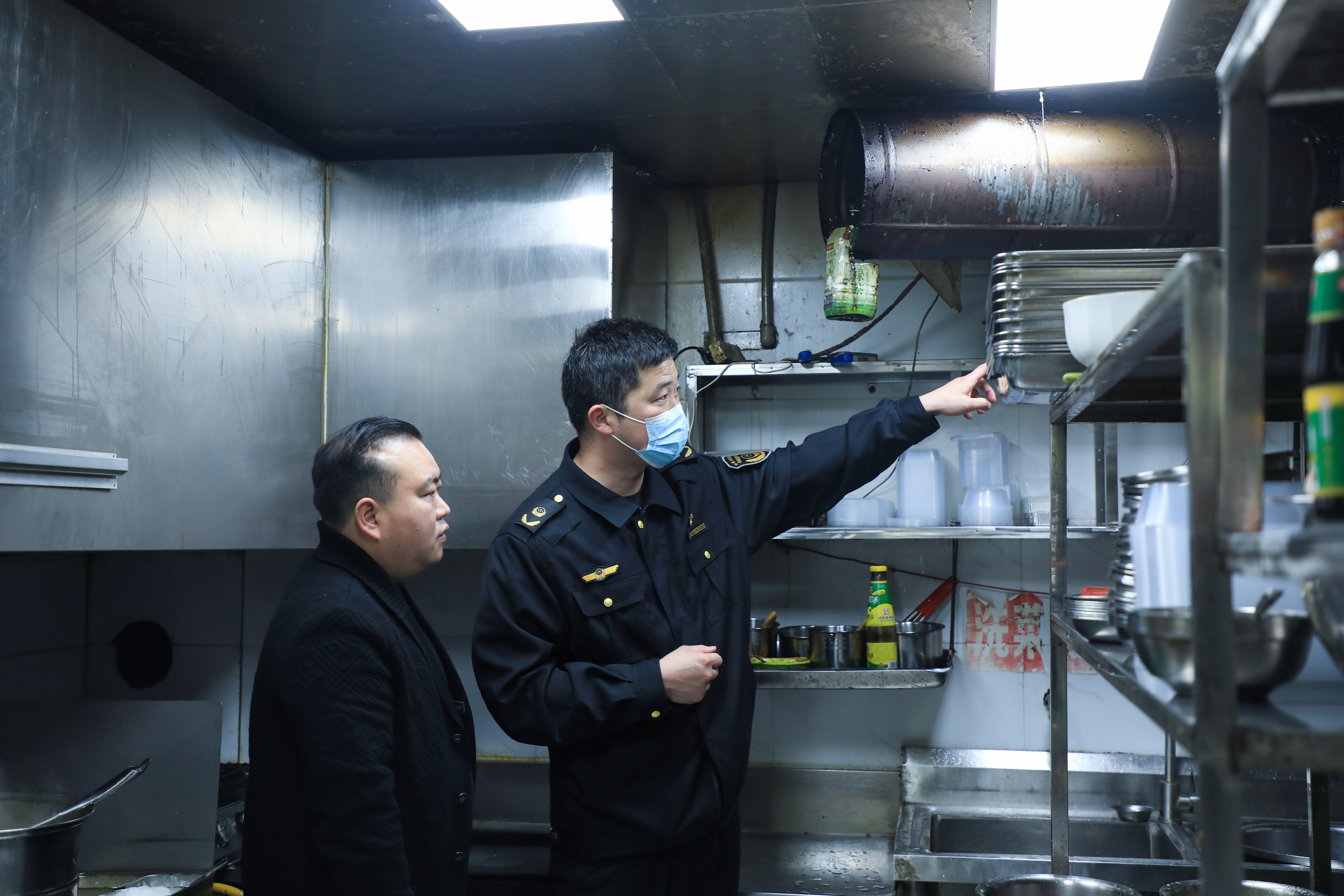 观山湖区市场监管局执法人员检查店铺后厨情况