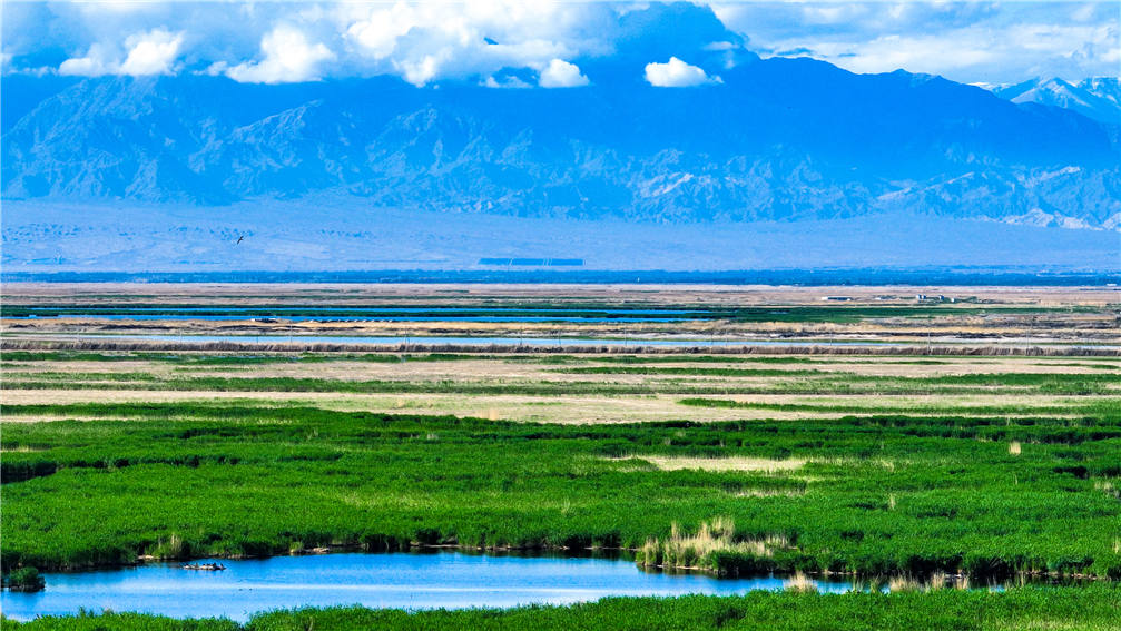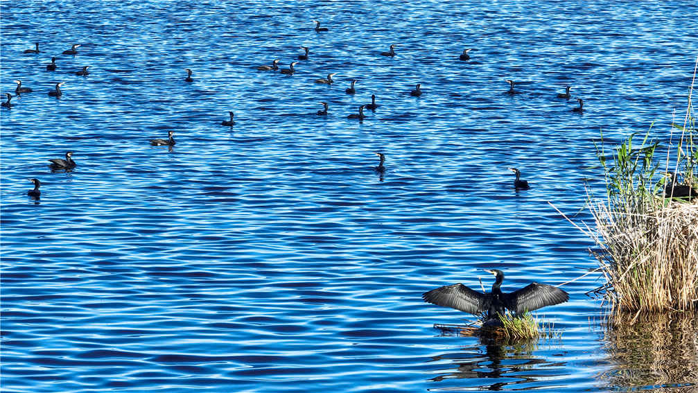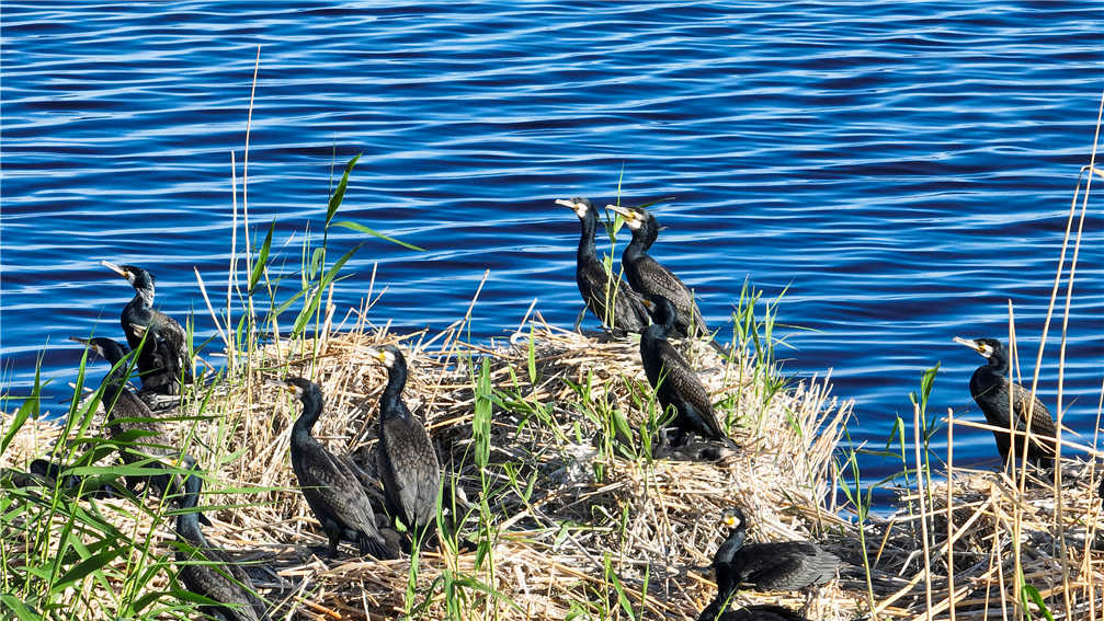 初夏,位于新疆巴音郭楞蒙古自治州博湖县境内的博斯腾湖湿地迎来了鸟类繁殖季,这里水草丰茂,碧绿的芦苇荡里成群的水鸟时隐时现,广阔的浅滩上成群的鸬鹚戏水觅食,碧水、蓝天、芦苇、各类水禽鸟类相映成景,构成了一幅美丽的自然生态画卷。(年磊)