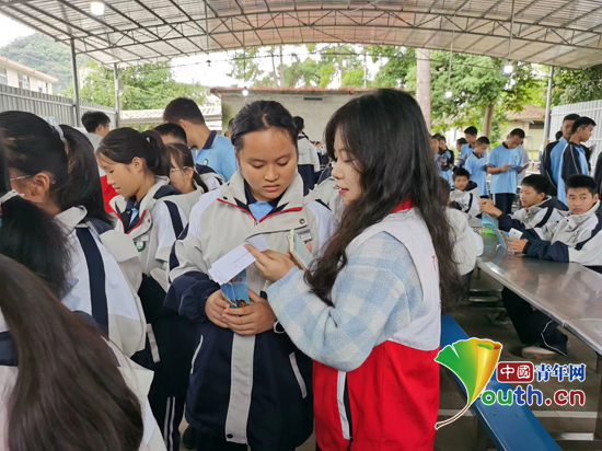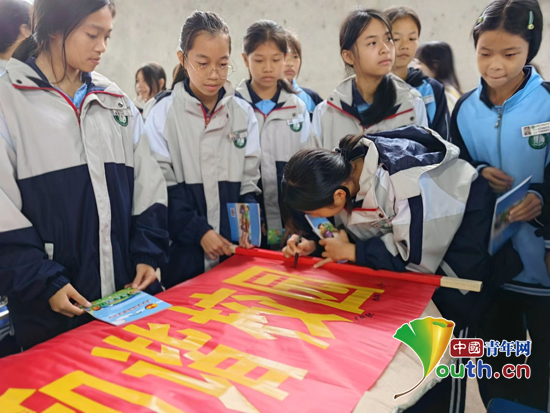 学生在活动横幅上签名。恭城团县委供图