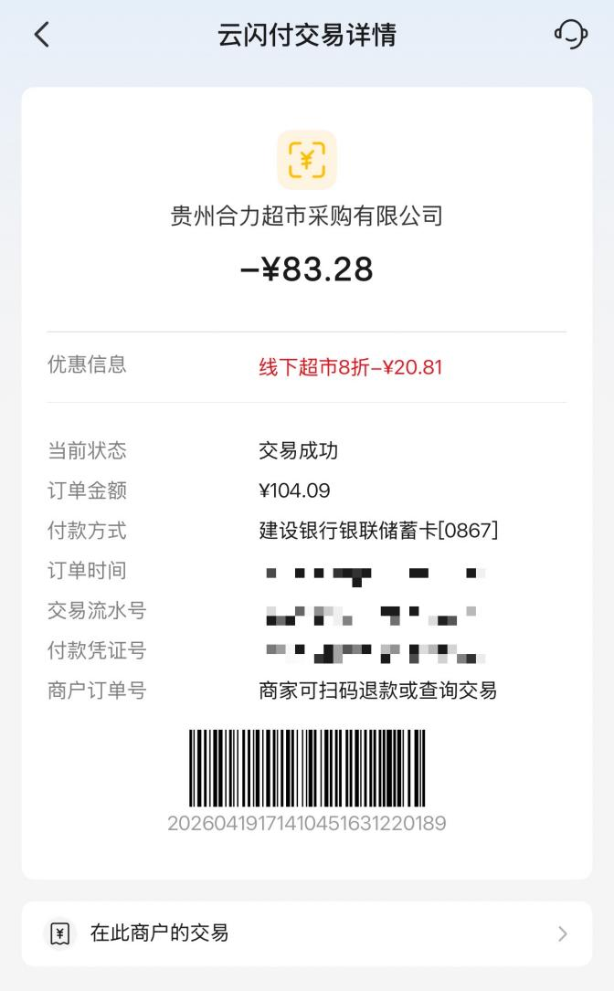 领取消费券以后云闪付出示付款8折立减,优惠次数不限,单笔优惠最高100元!无论线上线下,总能派上用场: