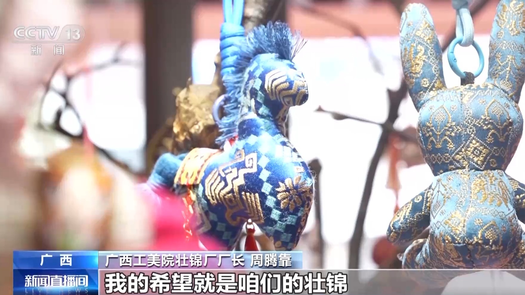 广西工美院壮锦厂厂长 周腾靠:我们做了很多更新,比如从纹样的设计创新、艺术特征的改进改良,包括材质的应用改进,基于现在的市场需求,更贴近人们的生活。希望壮锦不只是在博物馆里让大家赞叹,在日常生活中也能得到大家的认可。