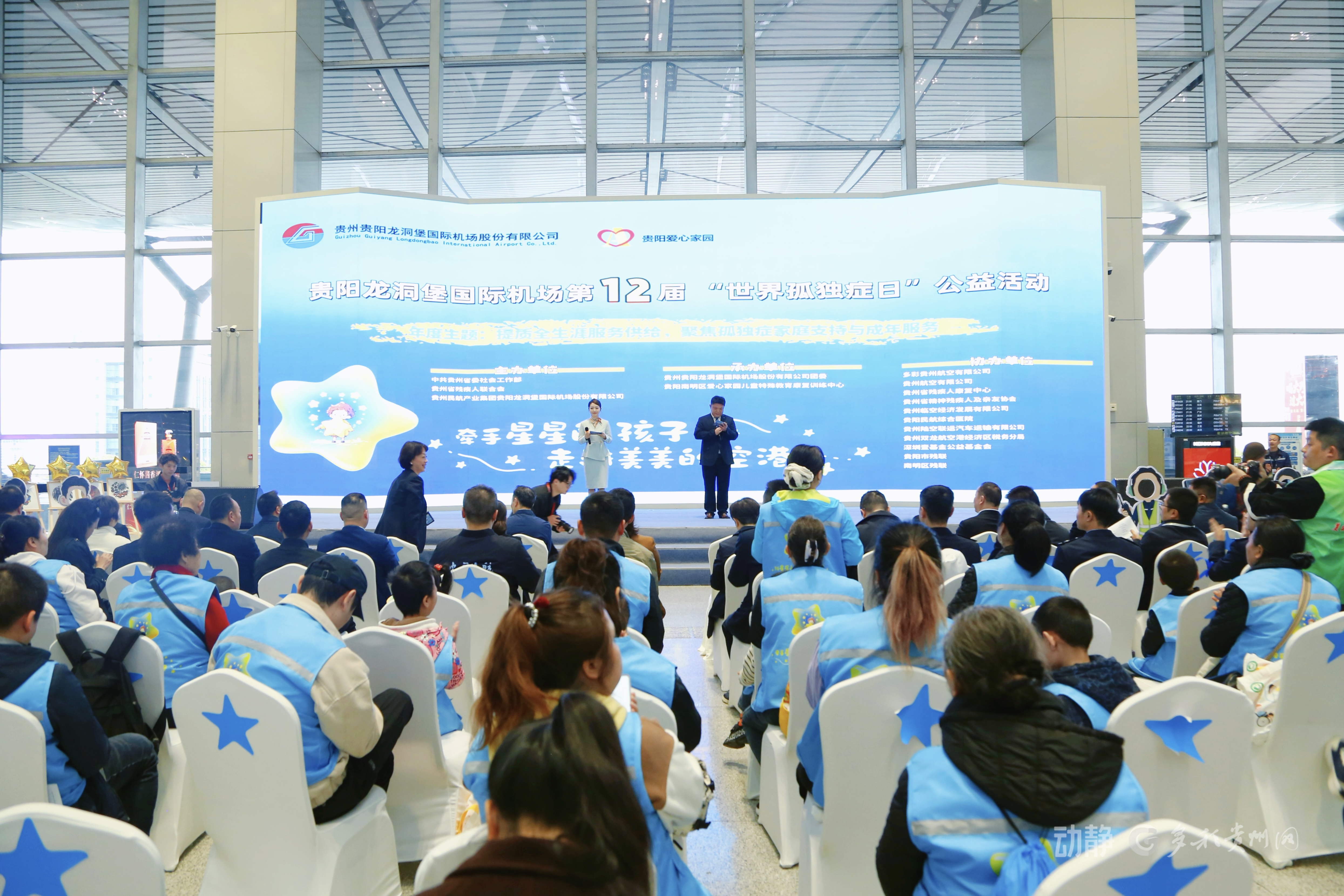 4月2日是第十九个“世界孤独症日”,贵阳机场携手贵阳爱心家园,在贵阳机场2号航站楼温情开展“世界孤独症日”主题公益活动。32名“星星的孩子”在家长、老师和贵阳机场志愿者的全程陪伴下,在“美丽空港”开启一场充满爱与温暖的沉浸式航空体验之旅。中国残疾人联合会主席程凯亲临现场指导,对贵阳机场联合多方力量,连续十二年举办“世界孤独症日”公益活动给予高度肯定。