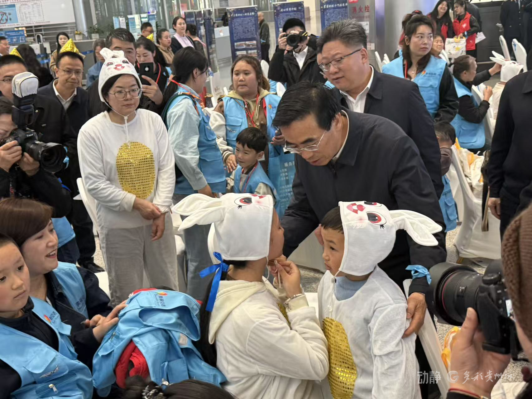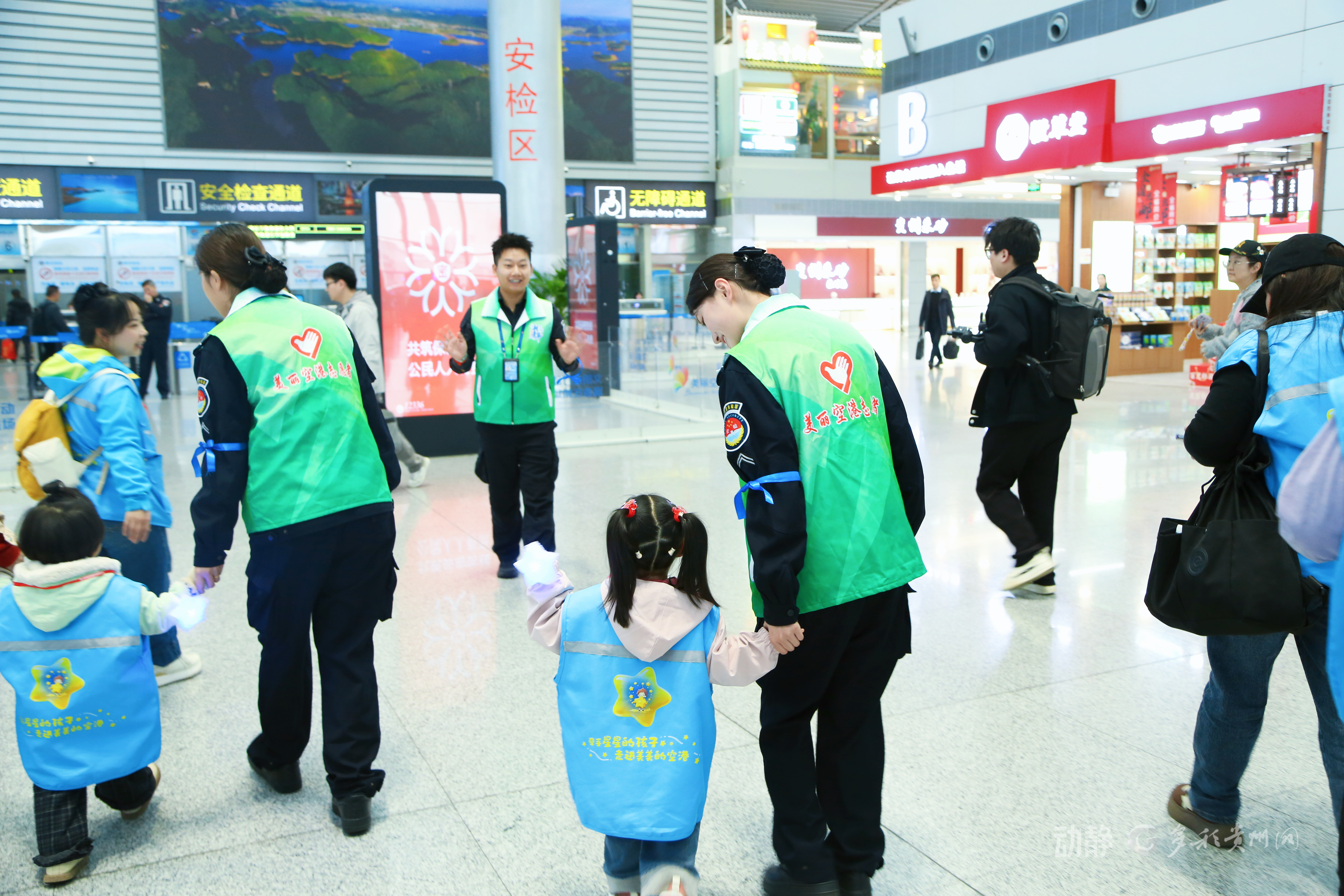 贵阳机场志愿者与孩子们亲密互动