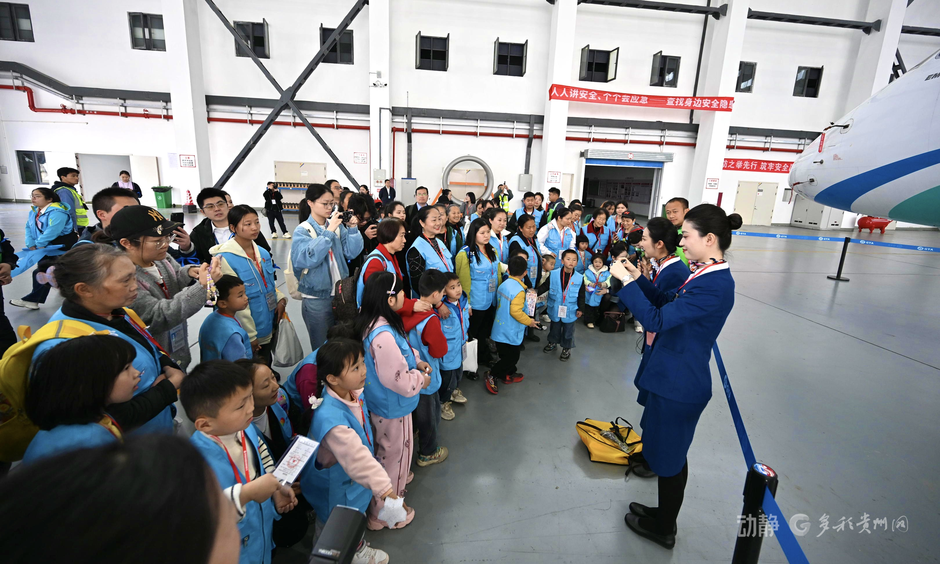 多彩贵州航空乘务员开展飞机实景科普讲解