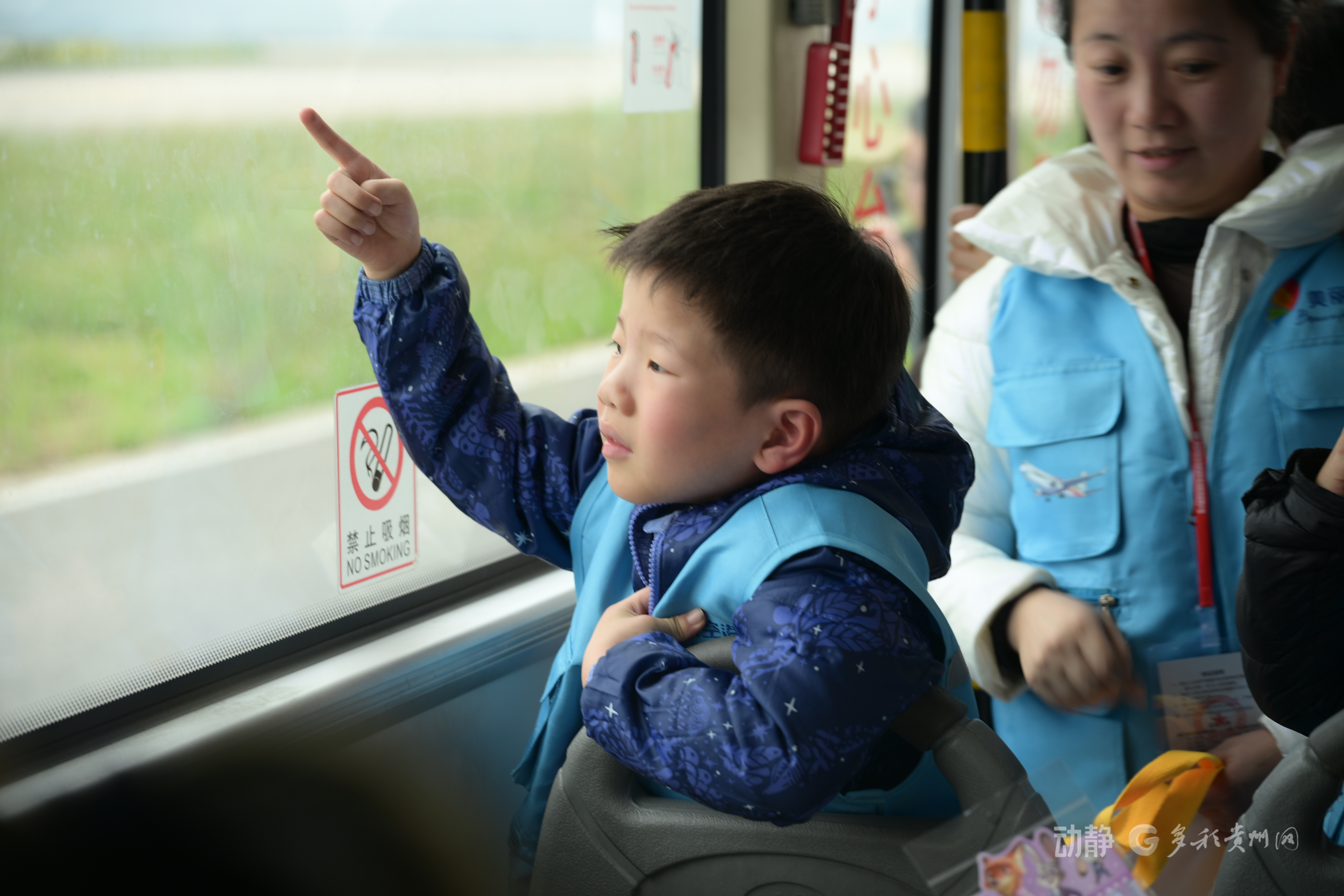 孩子们乘坐摆渡车参观机坪