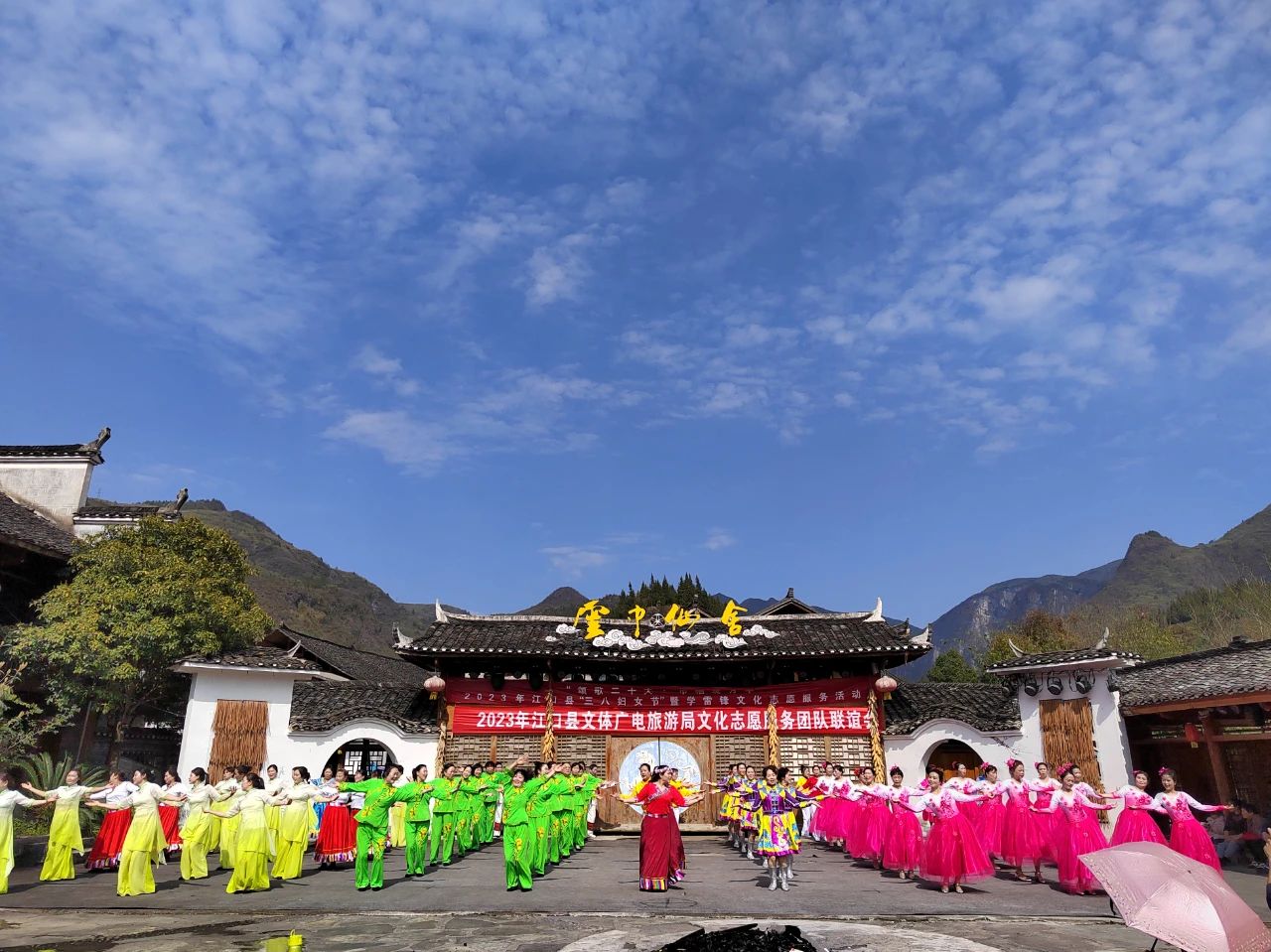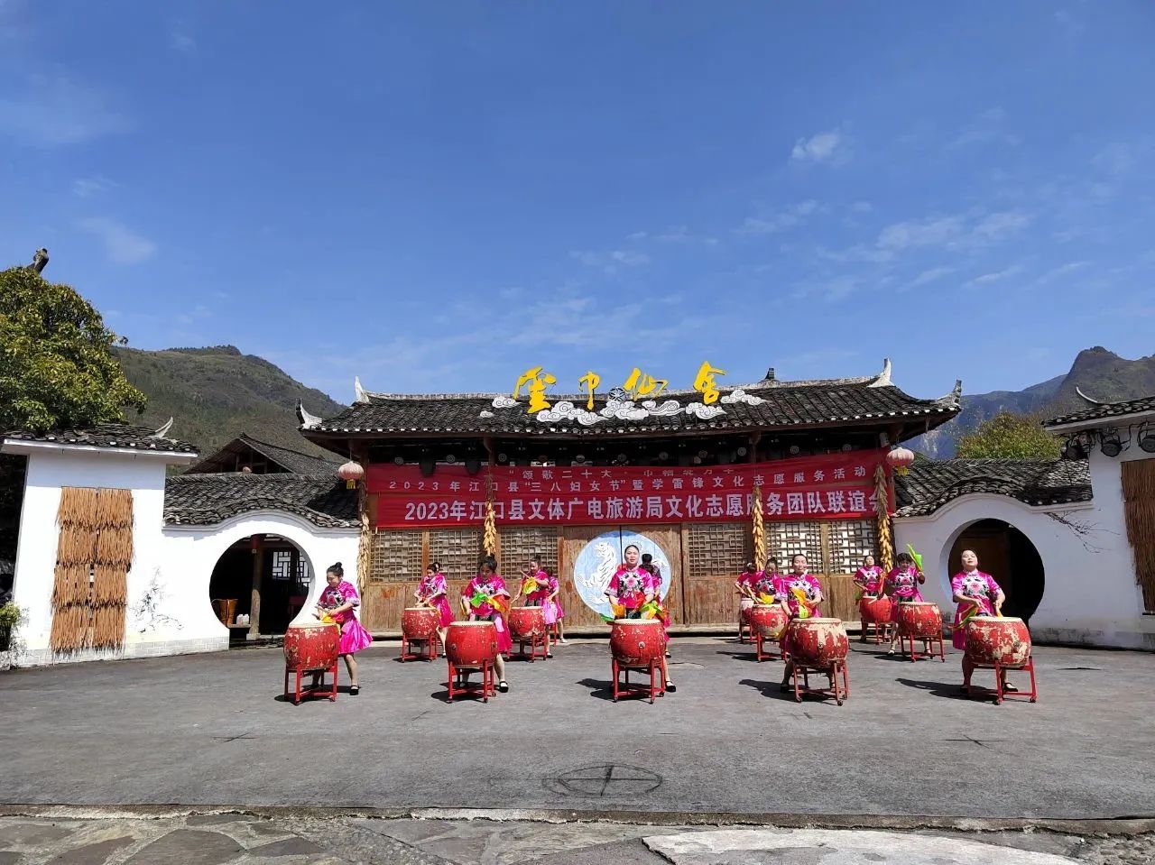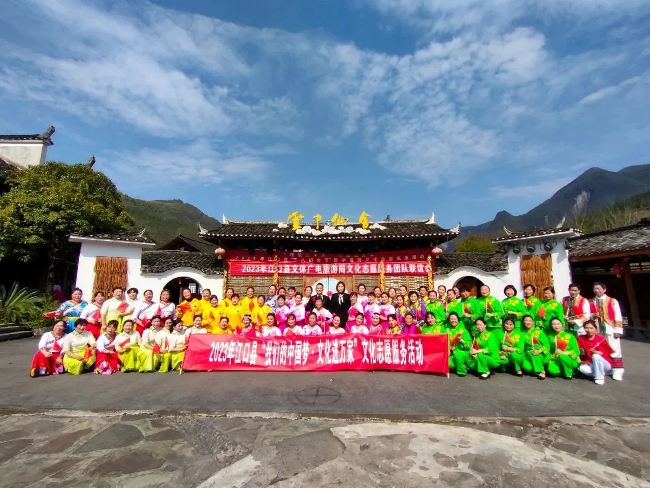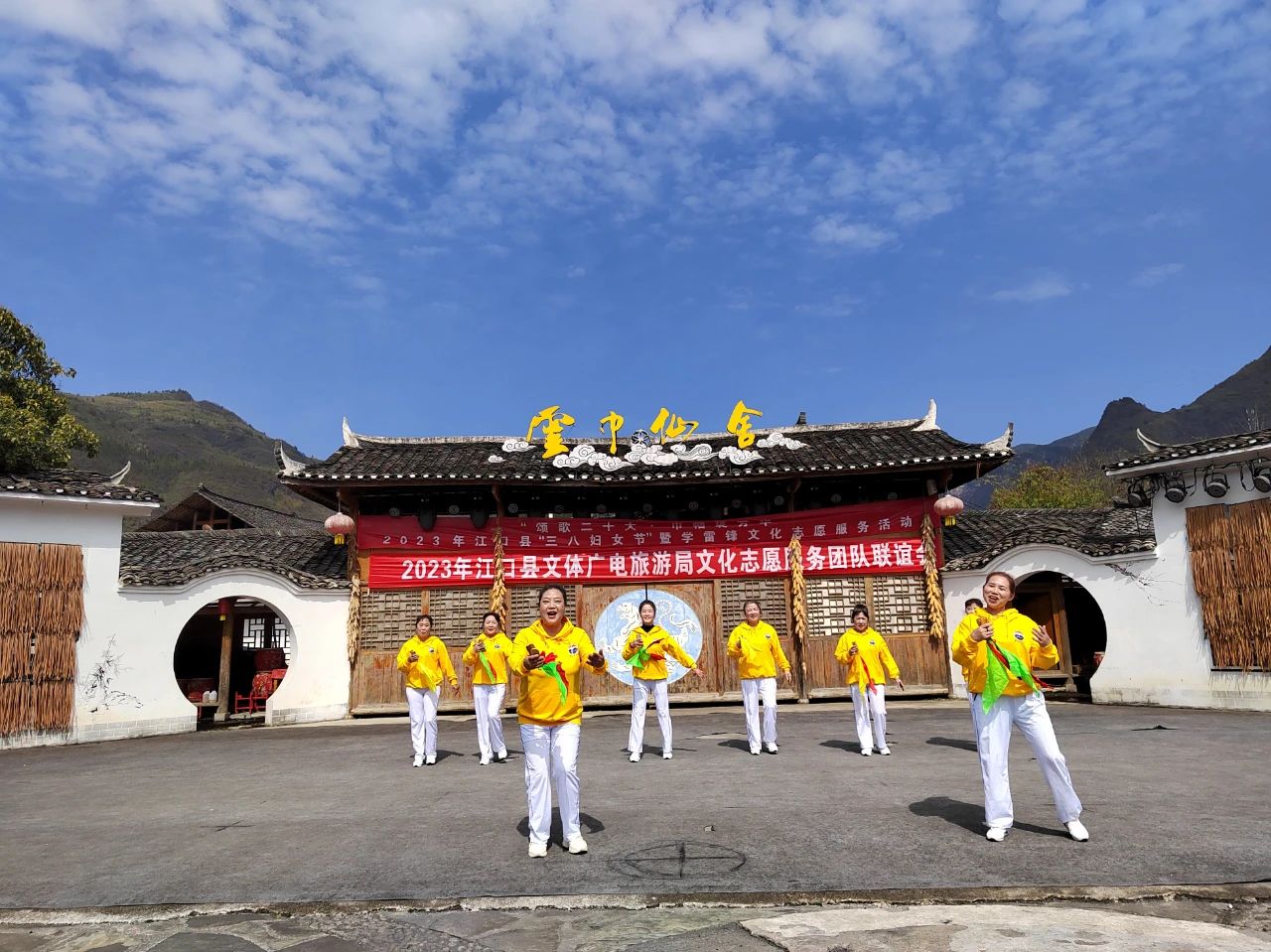 第113个“三·八”国际劳动妇女节来临之际,为宣传学雷锋志愿服务行动,增加节日气氛,让每个人都懂得关爱女性、学习女性、赞美女性。3月4日,由江口县文体广电旅游局主办,县文化馆承办,太平镇云舍村、云舍景区演职队、县文化志愿者服务团队协办的“颂歌二十大·巾帼绽芳华”2023年江口县“三八妇女节”暨学雷锋文化志愿服务活动在云舍景区举行。