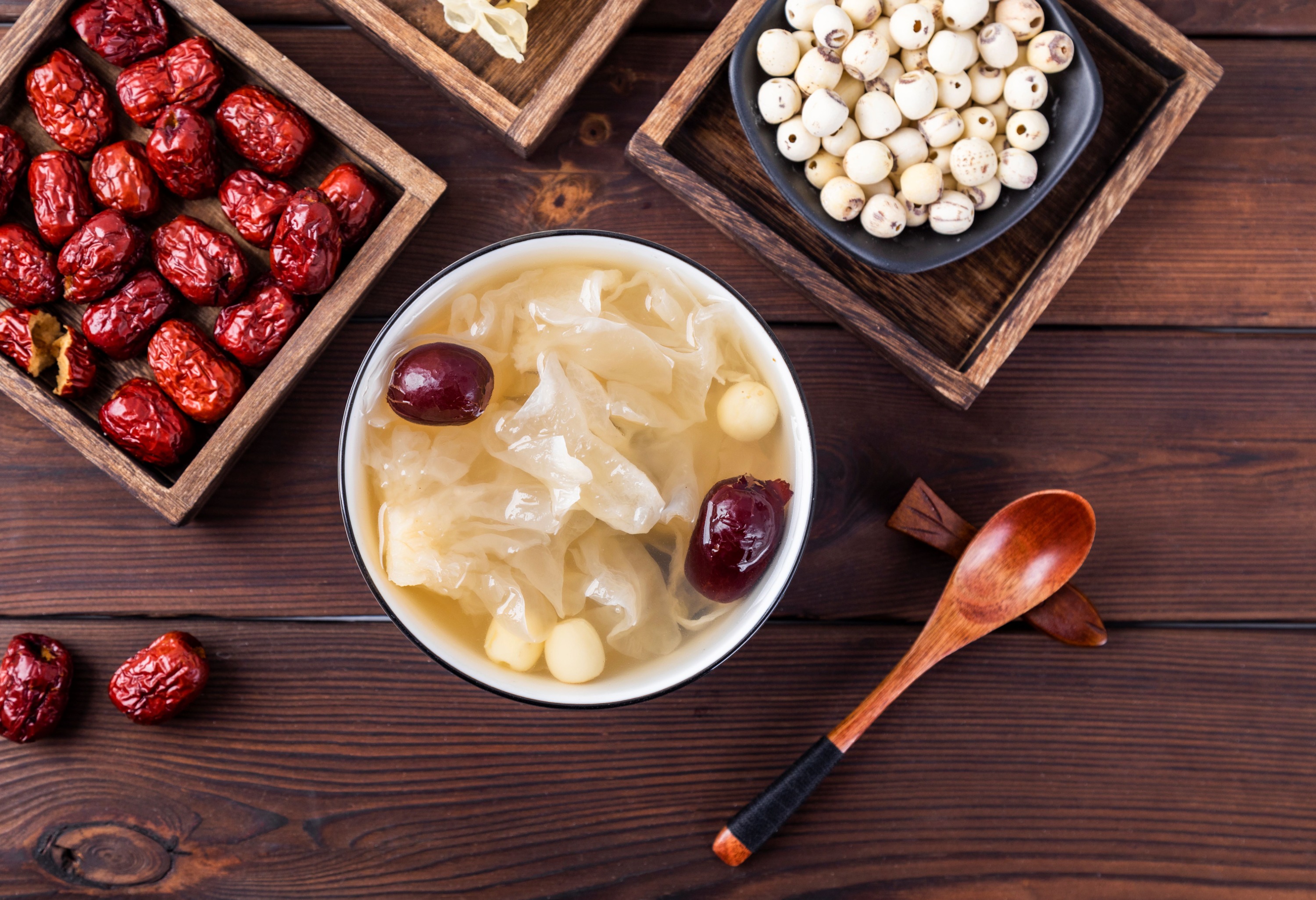 【莲子银耳百合羹】