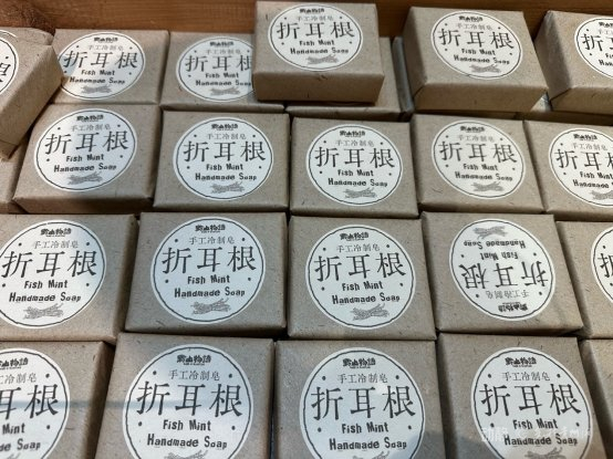 除了创意咖啡体验店,青云路上还涌现了很多有个性的文创店,眼前的这家店就将折耳根、木姜子等贵州特色原材料融进手工皂、唇膏等产品的制作环节,得到了外地游客的青睐。