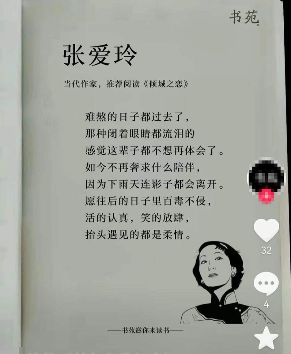 据报道,在短视频平台中,部分盗版书籍的营销,往往通过虚构一些不存在的"名人名言",制作成短视频进行传播,并和图书捆绑销售。而短视频的主角,一般是知名作家或是商业巨头。例如,杜撰张爱玲语录"活的认真,笑的放肆,抬头遇见的都是柔情"。