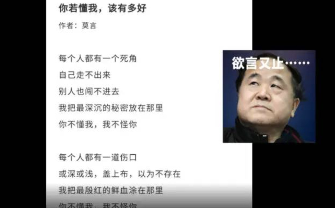 文章晒出了莫言回复友人林泉的亲笔信:你来信问网上流传的《酒色赋》是否我的作品,我明确地告诉你,这不是我的作品。就像那首我认为写得很好的诗,《你若懂我该有多好》不是我写的一样。我钦佩这些作者的才华,也为他们放弃自己的著作权而感到惋惜。说实话,我还收到过此诗被选入某大学教材后出版社寄来的一笔稿费,大概是四百余元。因此我希望此诗的作者赶快把自己的"孩子"认领回去,同时也把稿费领回去。