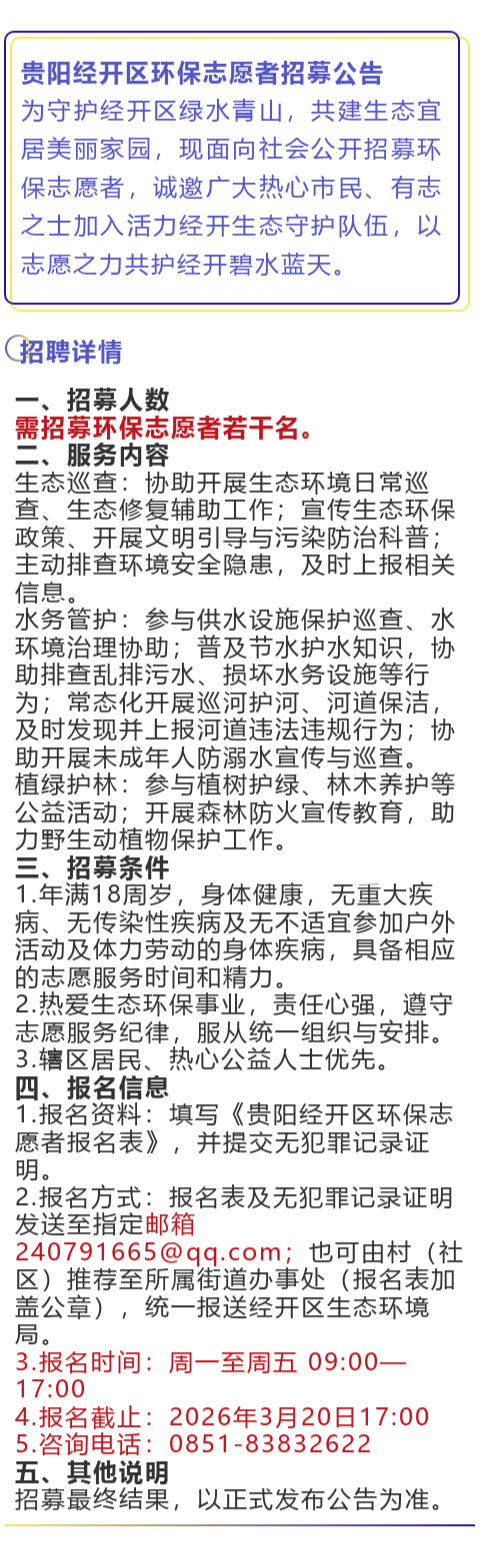 贵阳经开区招募环保志愿者!报名即将截止!