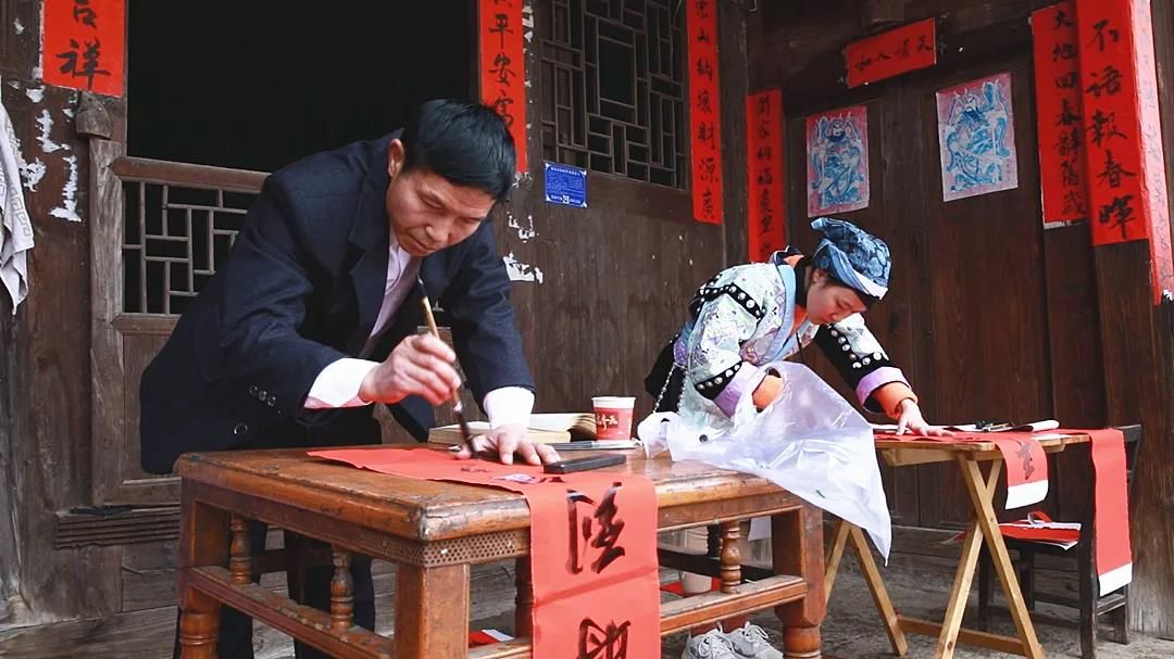 锤起锤落,一槽糯米被锤得粘稠柔韧,散发着香甜的气味。村民们把浓浓年味融进绵香软糯的糍粑里,写进吉祥如意的春联里,大家洋溢在欢声笑语中,共享辞旧迎新的喜悦,满怀憧憬迎接新的一年。
