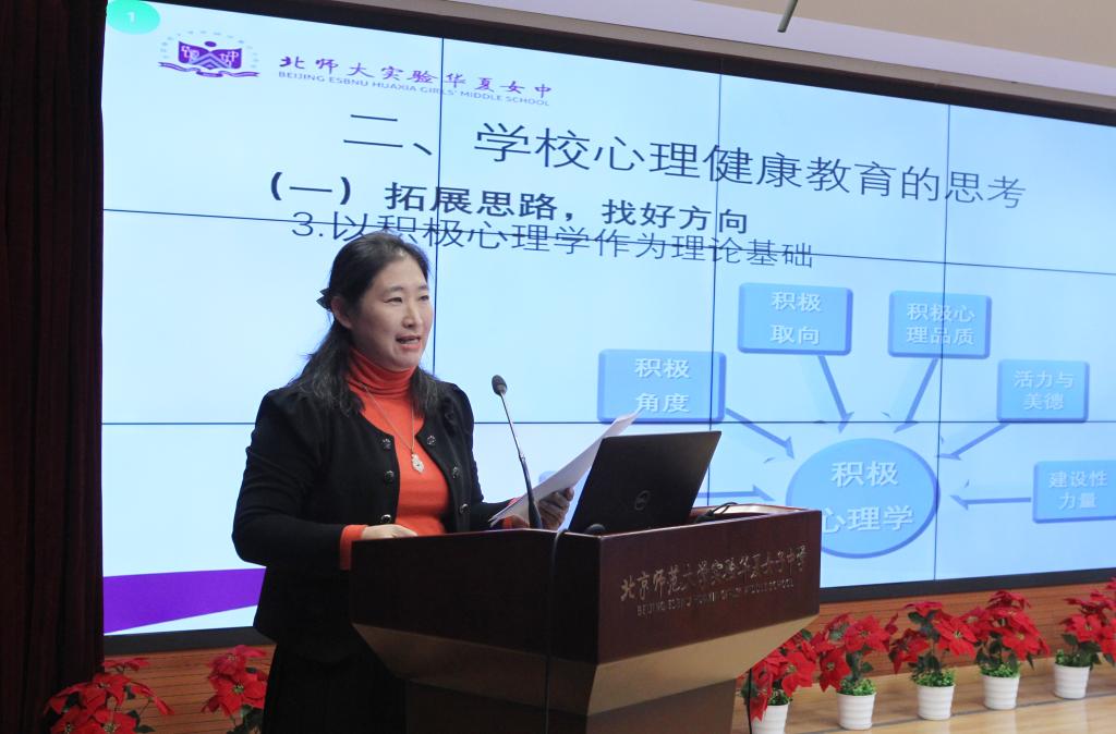 11月28日,北师大实验华夏女中德育教师孙明杰在主题论坛上做学校心理健康教育主旨报告。