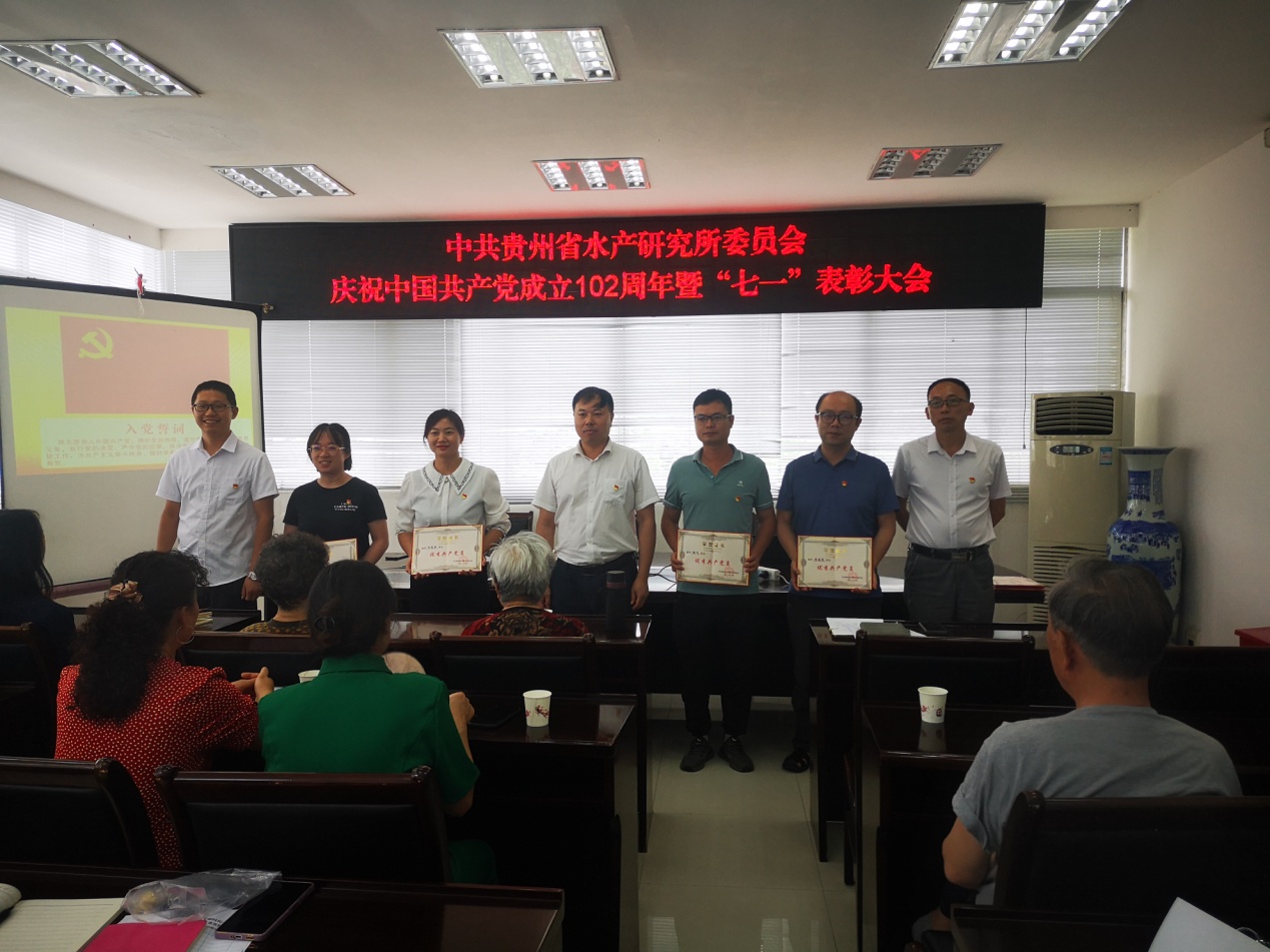会议宣读了《贵州省水产研究所关于表彰2022—2023年度优秀共产党员、先进党务工作者的决定》。水产所在职第一、第二支部、离退休支部共5名优秀共产党员和2名先进党务工作者受表彰。