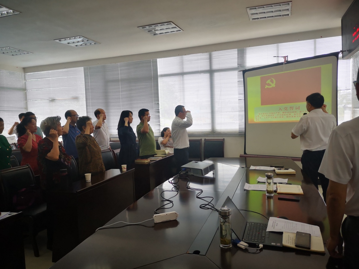 会上,所党委书记王启富带领在职全体党员、离退休支部党员代表、预备党员同志重温入党誓词,奏唱《中华人民共和国国歌》和《国际歌》。