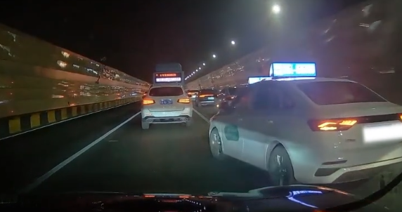 接到举报后,民警立即开展调查。从举报人提供的视频中清晰可见,举报车辆当时正在隧道内排队正常行驶,被举报车辆发现自己所在车道行驶较慢后,便压实线挤入相邻车道。