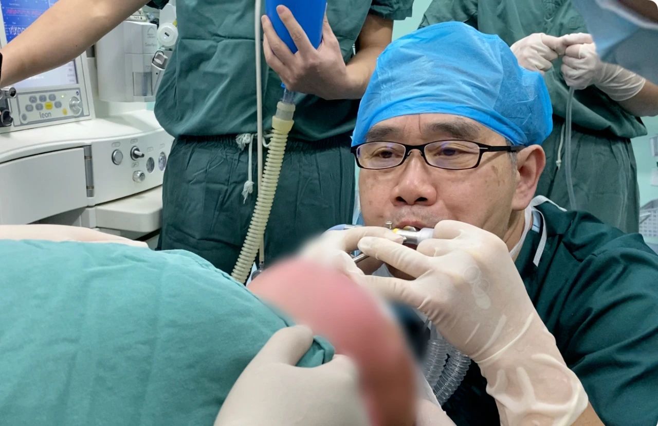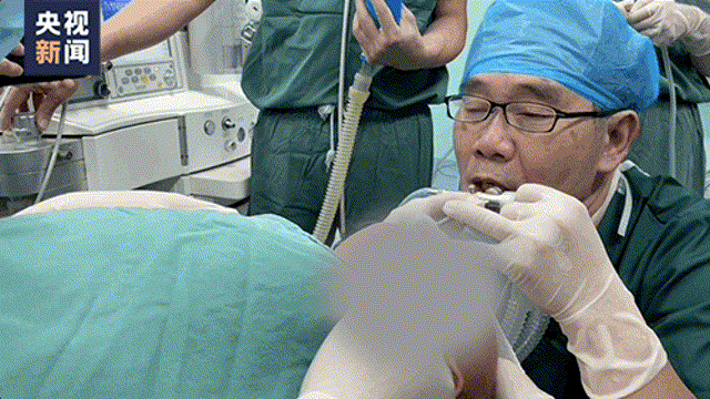 钟彦在为孩子吹氧和吸取坚果碎间来回切换
