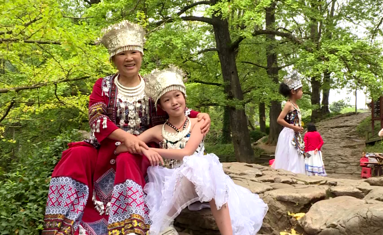 来自四川的李女士一家,一到妥乐古银杏景区就被这里的民族服饰吸引了。她们一家老幼身着不同的民族服饰在景区里拍照、游览、其乐融融。