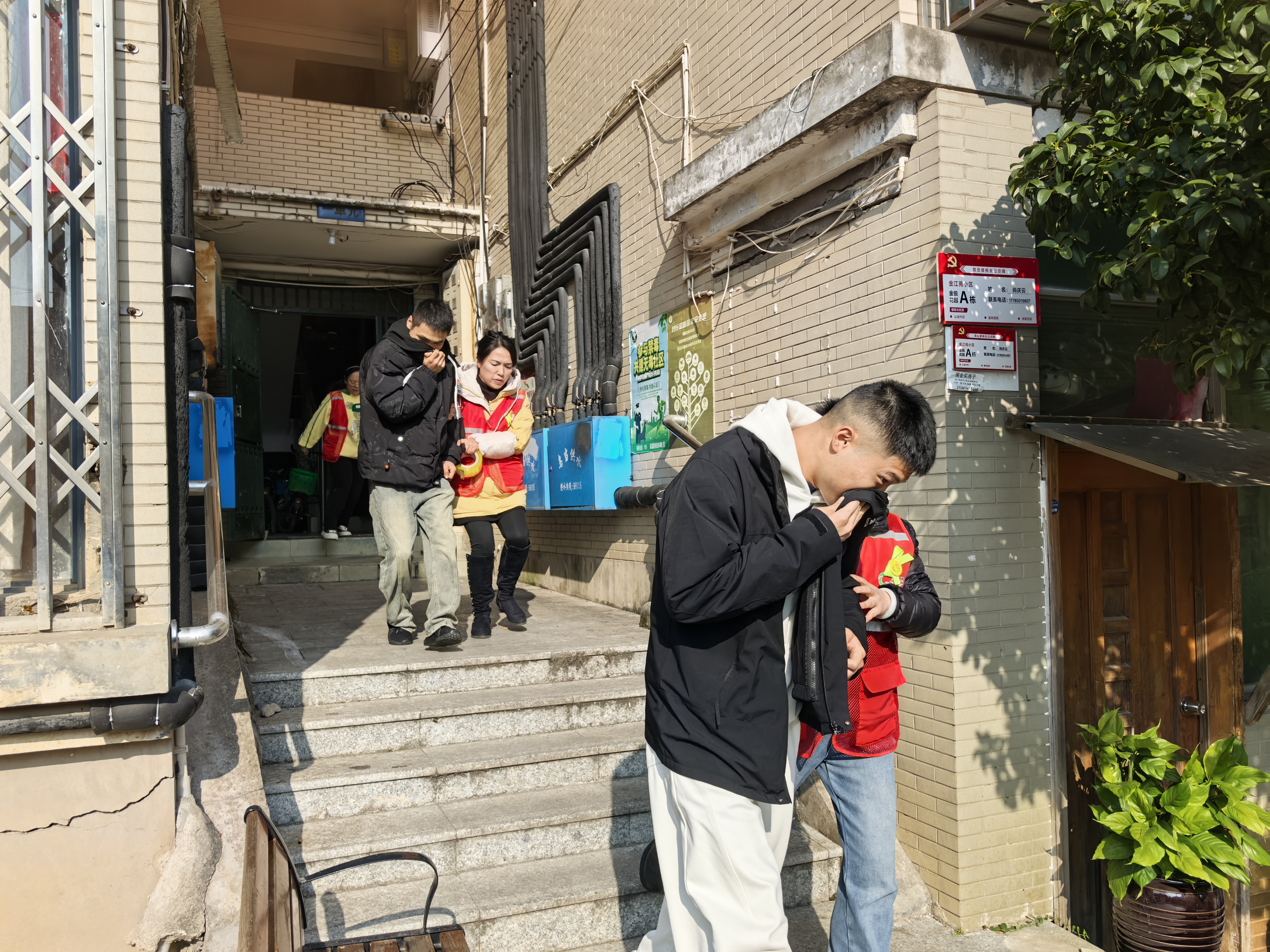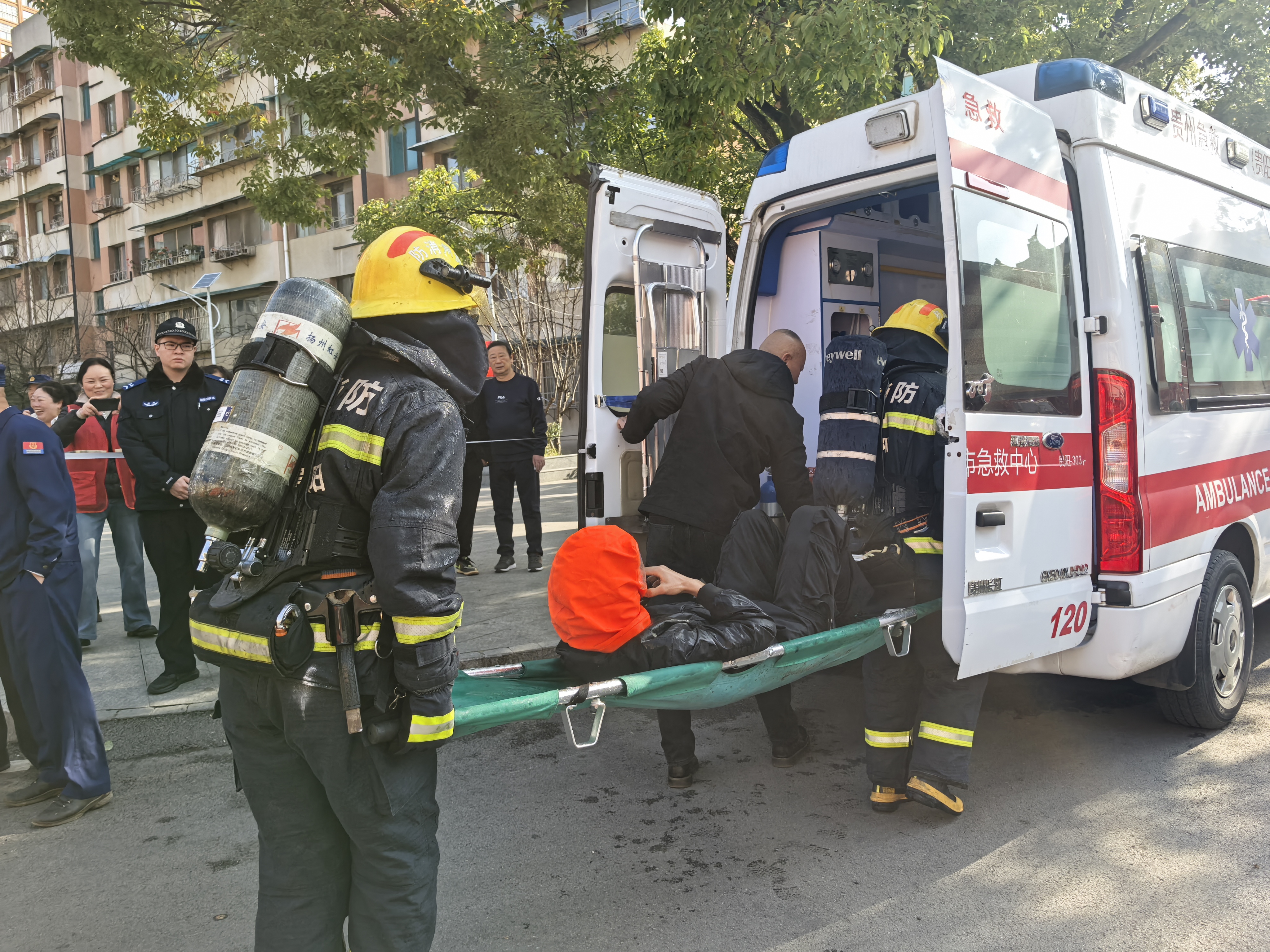 此次演练模拟金江苑小区因电气线路故障引发住宅火灾,火势借风迅速蔓延至楼道并产生大量浓烟,有居民被困,情况危急。险情发生后,小区网格员第一时间发现火情,立即组织居民用湿毛巾捂住口鼻,沿安全通道有序撤离,为后续救援争取了宝贵时间。演练启动后,全勤指挥部迅速响应,按照“侦察警戒、攻坚救人、供水灭火”的作战体系展开行动,调度公安、交警、供电、医疗等联动部门协同处置。
