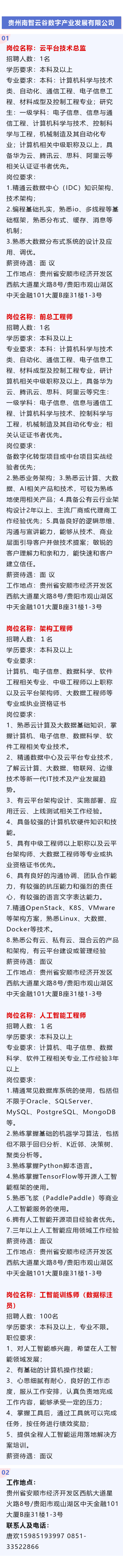 贵州南智云谷数字产业发展有限公司5岗招聘!正在报名中!