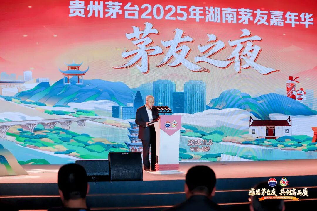 段建桦在致辞中表示,茅台承袭“顺天敬人 明理厚德”的企业价值观,遵循酿酒的自然本真,端午制曲、重阳下沙,顺应时节变化,让每一个酿造环节都成为对天地心怀谦卑的致敬。茅台始终坚持尊重消费者的初衷,以卓越品质回馈每一份信任,严格把控从原料到出厂的每一个环节,持续开发贴合不同场景的优质产品;始终以消费者为中心,以真诚服务回应每一份期待,不断完善服务体系,让每一位茅友感受一家亲的温暖。未来,茅台将始终与消费者携手,与茅友共酿风雅,共赴美好追求,共担道义践行社会责任,推动茅台文化与湖湘文化深度融合,让茅台的酱香飘满三湘四水,让湖湘文化的深厚底蕴为茅台文化注入新的活力。
