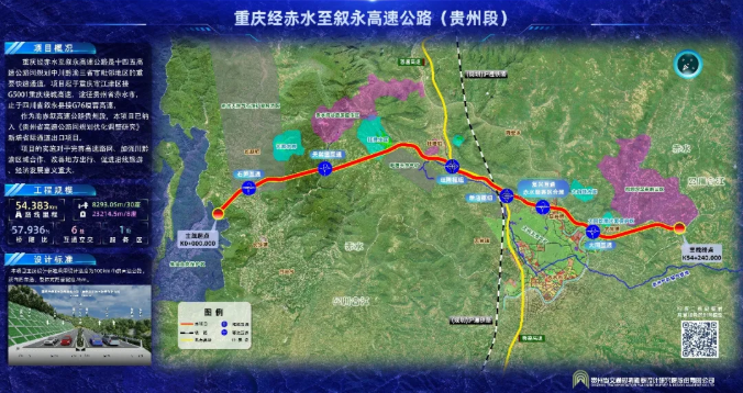 贵州交投集团投资建设的渝赤叙项目起于赤水市长期镇与四川合江县宝福镇交界处接四川合江段,终点至川黔省界两汇水村附近接四川叙永段,路线全长54.274公里,全线拟采用双向4车道高速公路技术标准建设,设计速度为100公里/小时。该项目的建设有利于贵州、四川、重庆互联互通,加强黔川渝区域合作交流,有助于贵州建设交通强国西部示范省,巩固西南重要陆路交通枢纽地位,完善全省(市)高速公路网络,增加出省通道,完善“大交通”促进“大旅游”,推动旅游业“井喷”式发展。