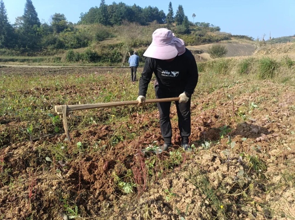 “我就是附近的村民,在这里挖紫薯,一天大概能够挣到100元钱,在家里带孙子的同时还能有点收入补贴家用,感觉还挺好的。”基地务工人员罗永菊说。