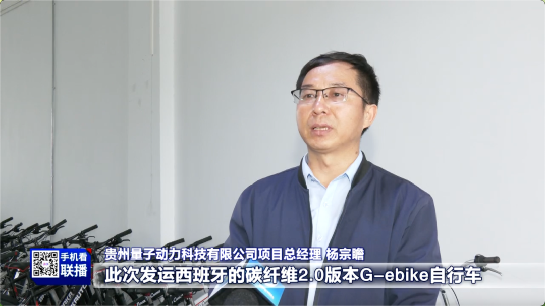 贵州量子动力科技有限公司项目总经理 杨宗瞻:此次发运西班牙的碳纤维2.0版本G-ebike 是公司中高端产品。它的核心技术和亮点:一是无链条传动系统核心零部件、