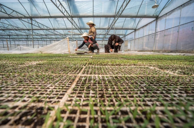 初春时节,在贵州省毕节市大方县羊场镇的辣椒育苗基地里,村民们正弯腰细心查看辣椒苗的长势,指尖游走在苗间,将一根根杂草清除。这里每年春季培育出超过1000万株的辣椒苗,为5000余亩土地带去收获的希望。